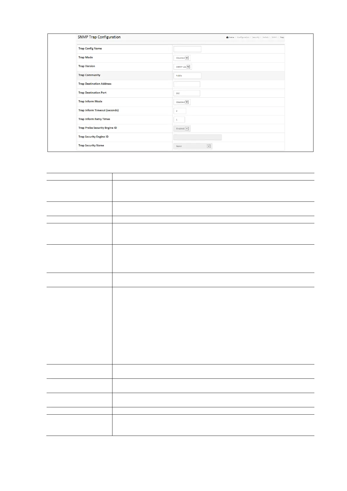 Indicates the trap configuration’s name. Indicates the trap destination’s name.