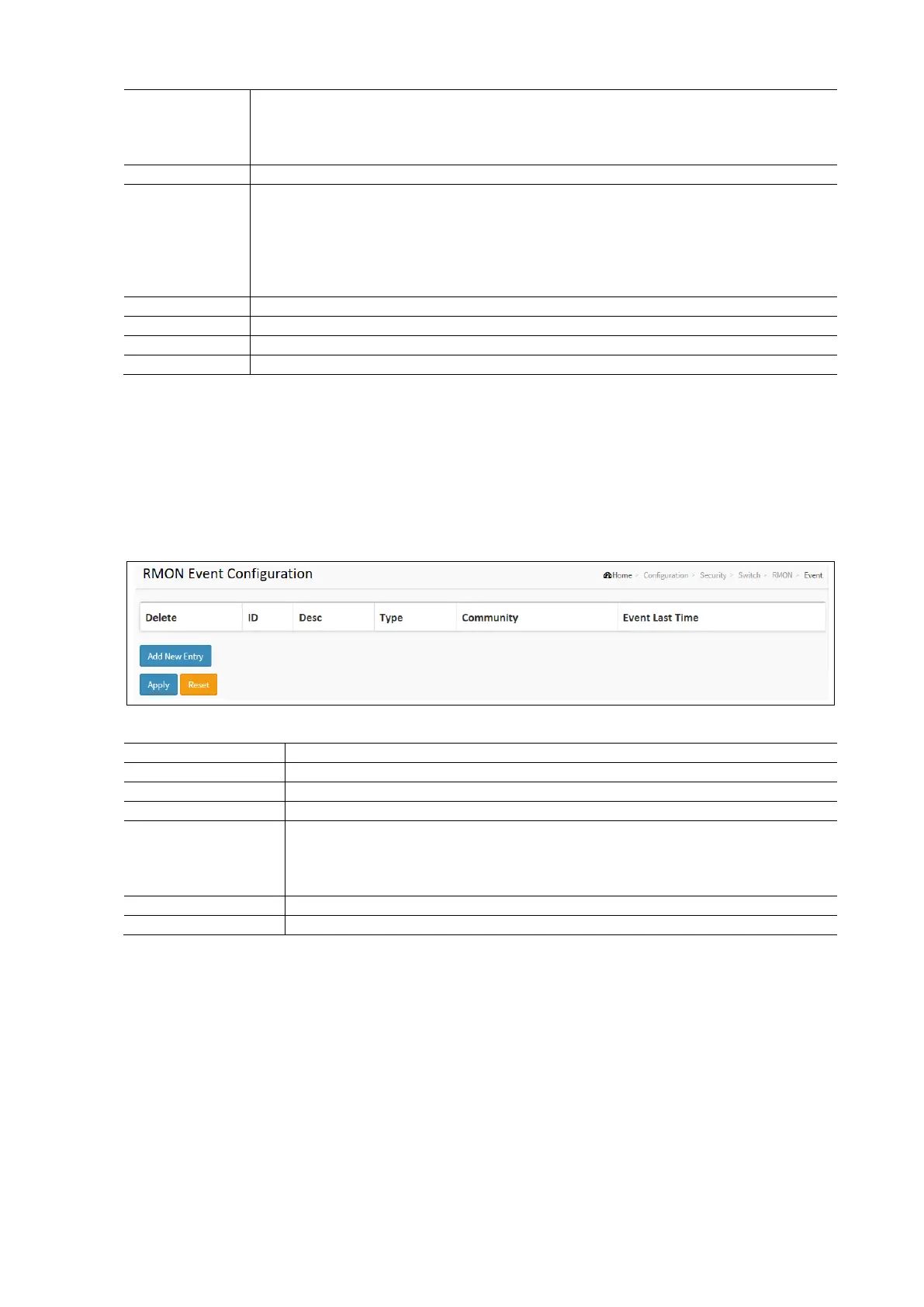 Click Configuration / Security / Switch / RMON / Event