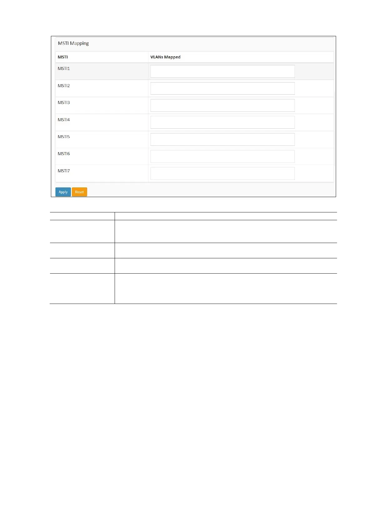 (see below), as well as the VLAN-to-MSTI mapping configuration in order to share spanning