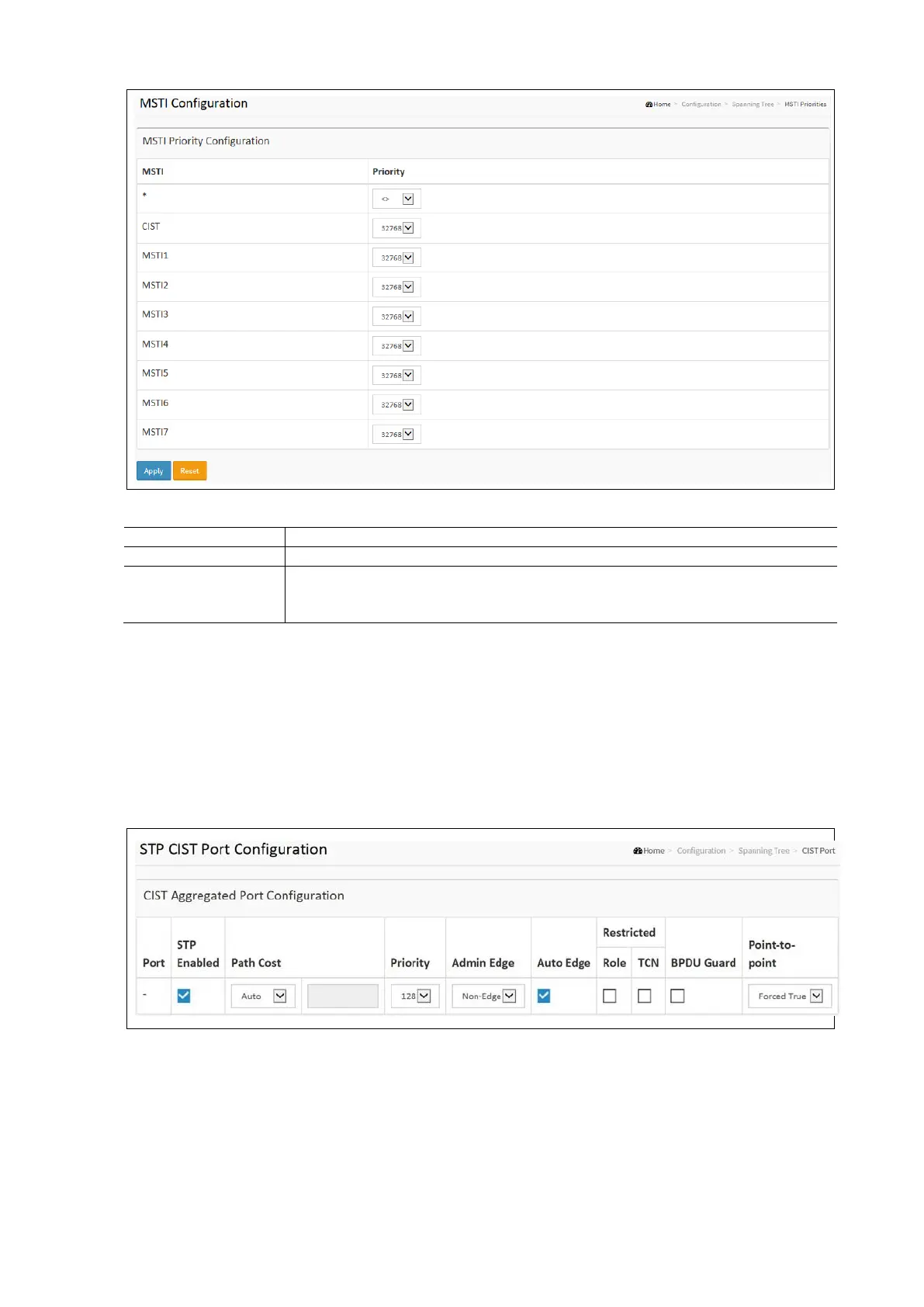 Spanning Tree MSTI Priorities Configuration Parameters: