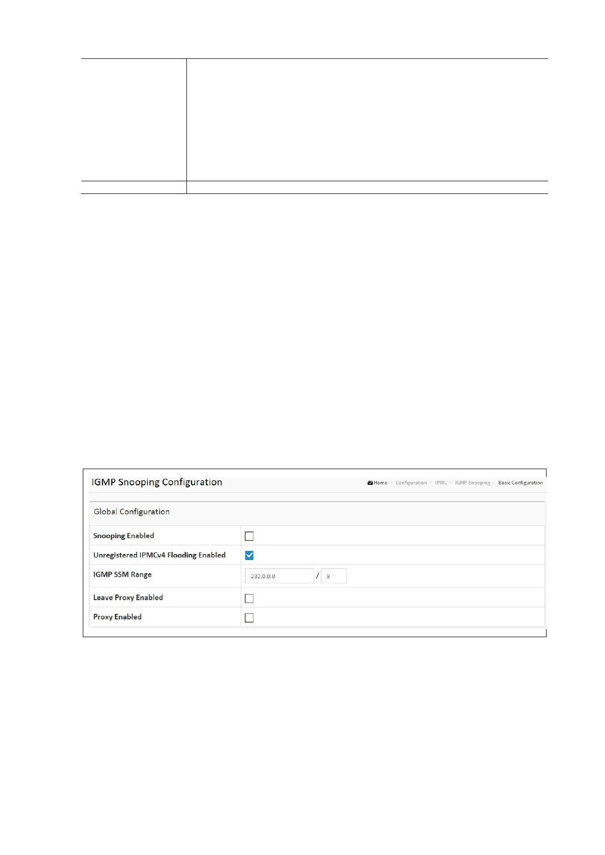 Click Configuration / IPMC / IGMP Snooping, / Basic Configuration