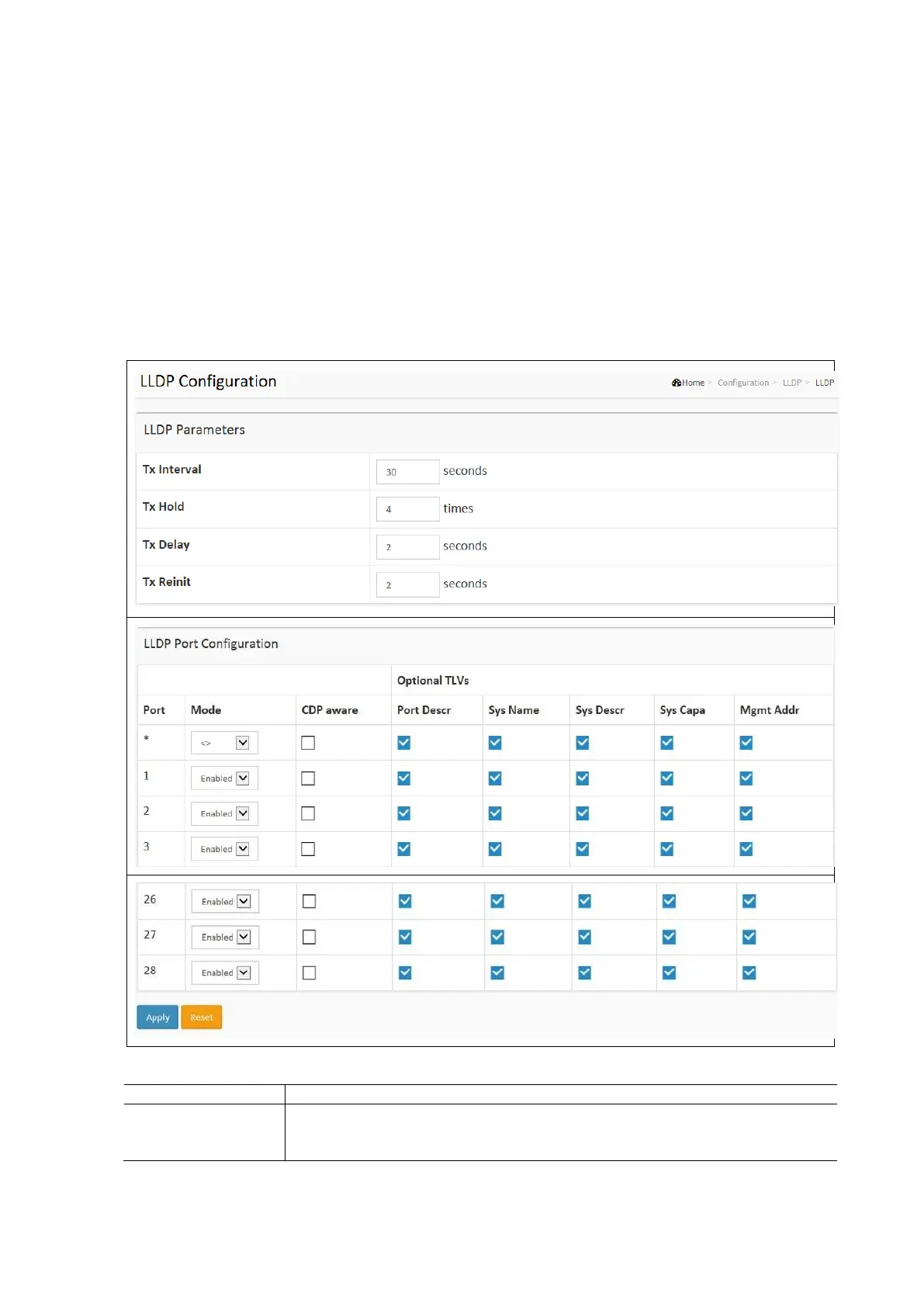 LLDP Configuration Parameters: