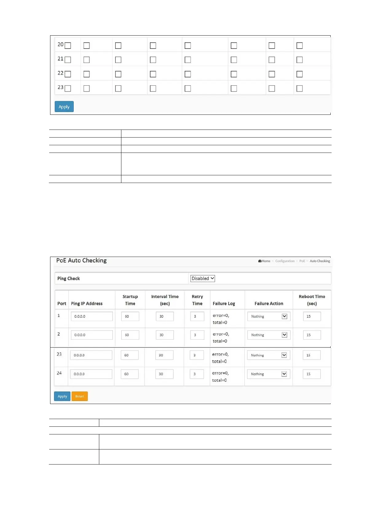 PoE Auto Checking Configuration Parameters: