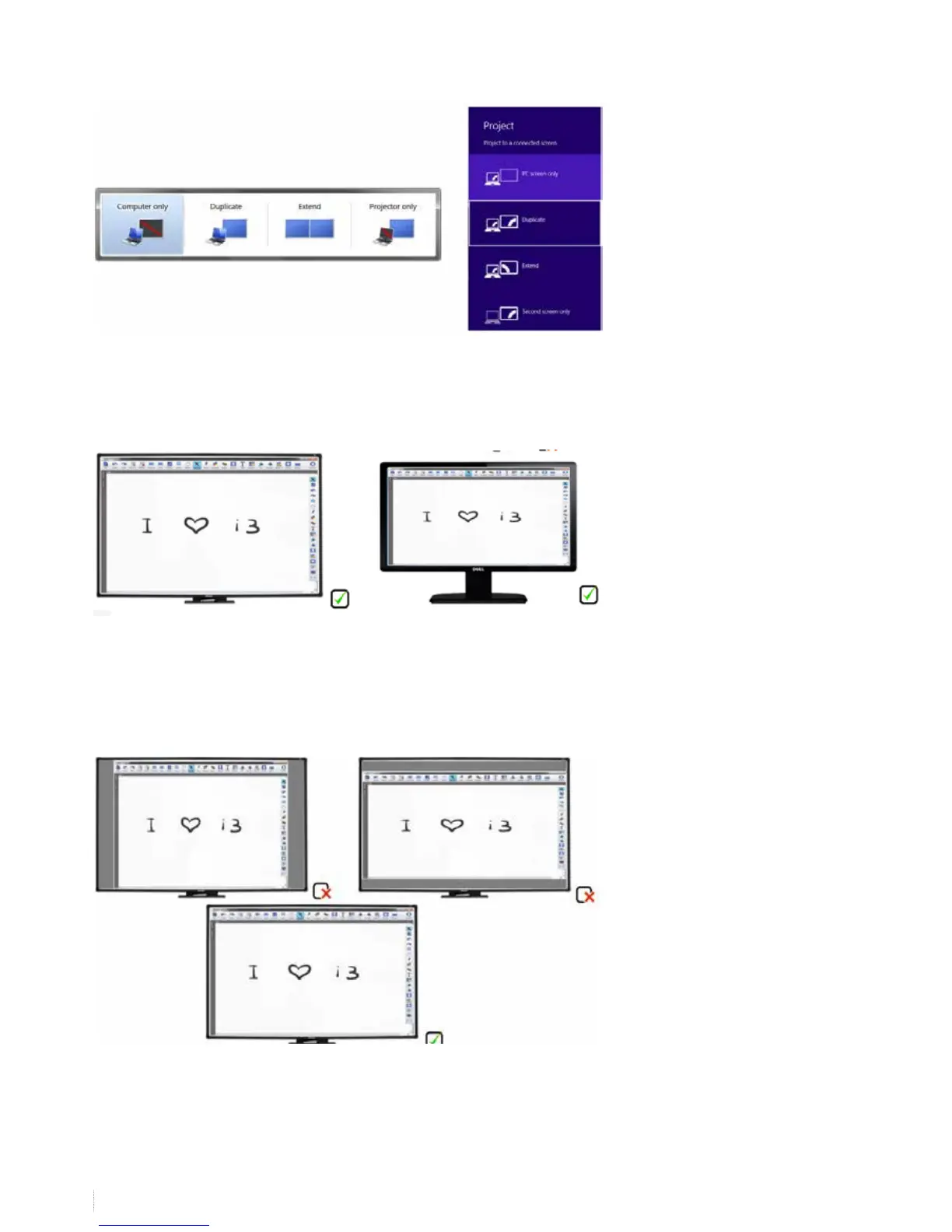 Choose “duplicate” to see the computer image on both PC display and projector, or “projector only” to see the computer