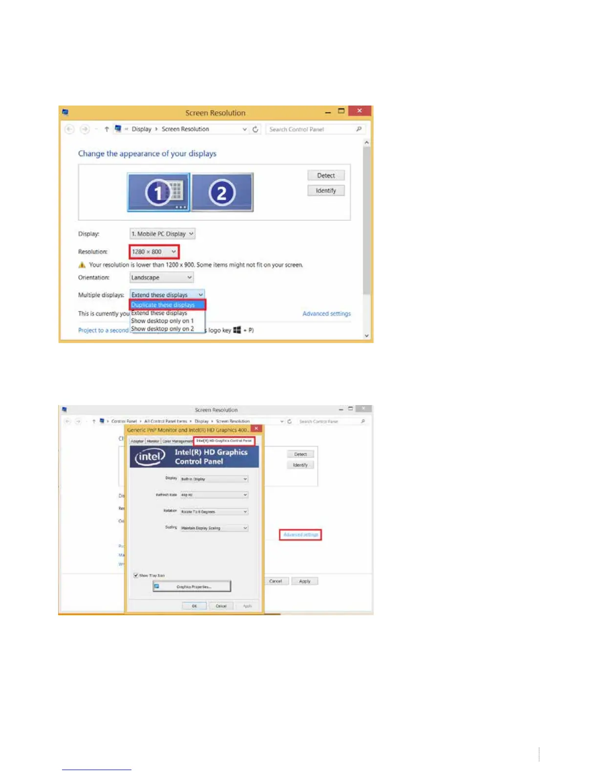 Preferably a 16:10. Then choose duplicate. (For the i3BOARD 77” choose a 4:3 resolution (e.g. 800:600) and change the