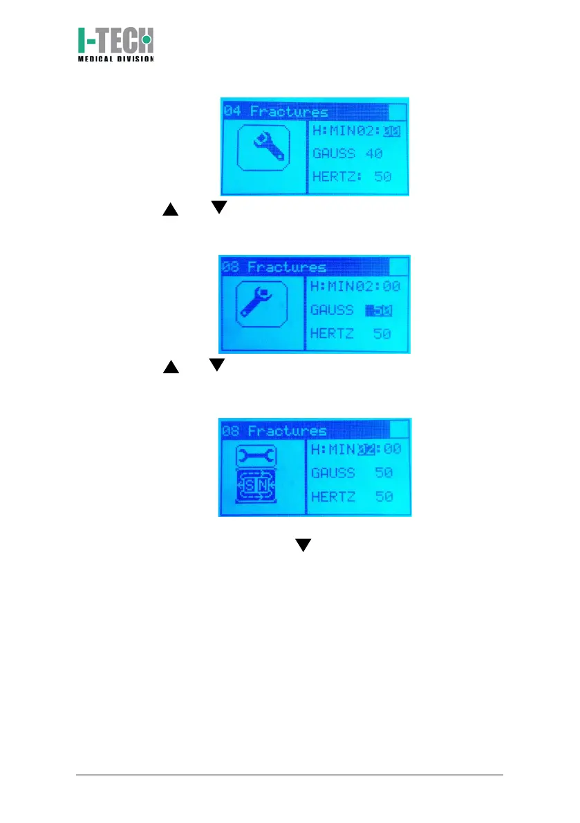 TO USER10) choosing therapy parameters as treatment time, field intensity