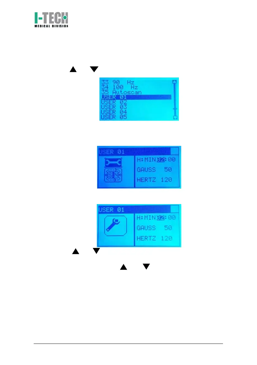 therapy minutes. Press and keys to adjust the desired