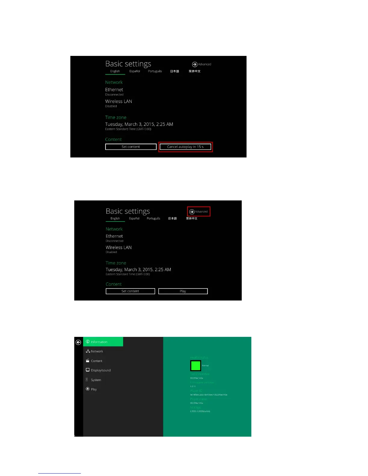 Usercanchecktheplayer’sbasicinformationincludingtheHealthstatus,Firmwareversion,andPlayerID.