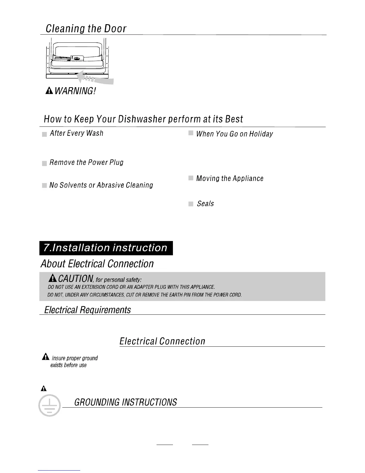 earthed properly. If the electrical socket to which the appliance must be connected is not