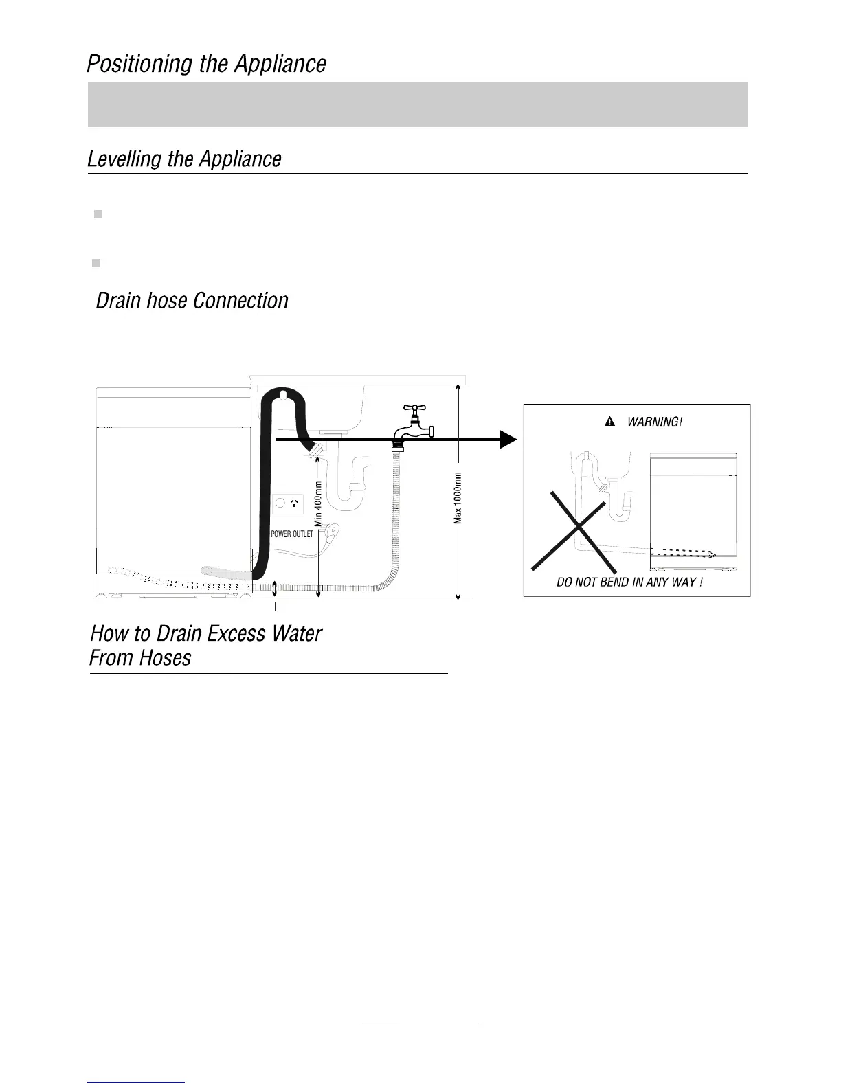 or crimping it. Use the special plastic drain hose support that comes with the appliance. The free end of the hose must be at a height