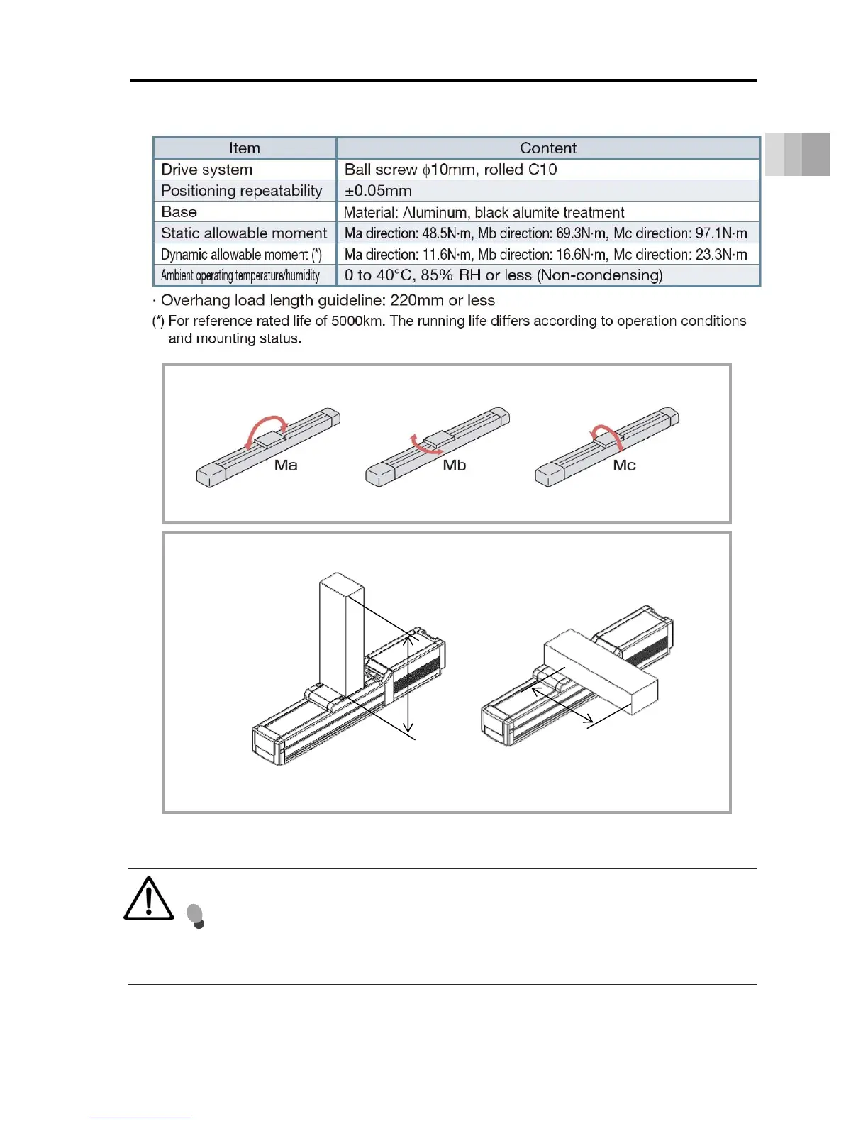 If the actuator is used with excessive allowable moment and overhang load, it may not