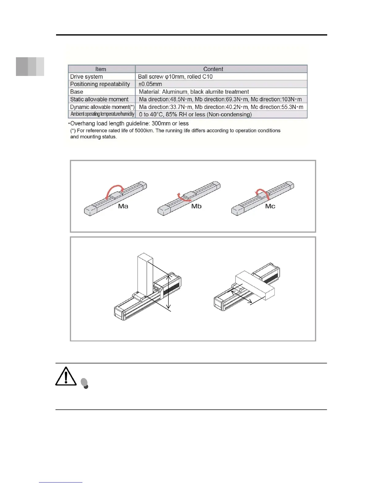 If the actuator is used with excessive allowable moment and overhang load, it may not