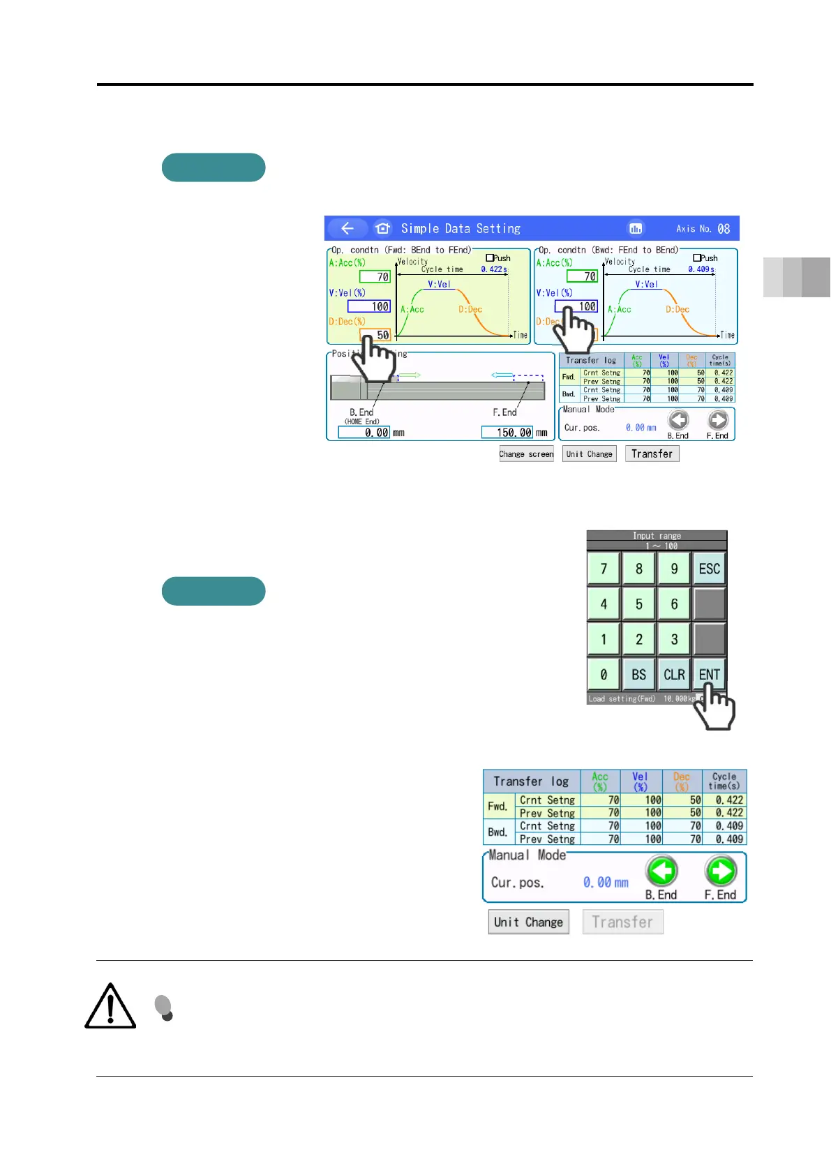 After setting the numerical value, touch the [ENT] key.