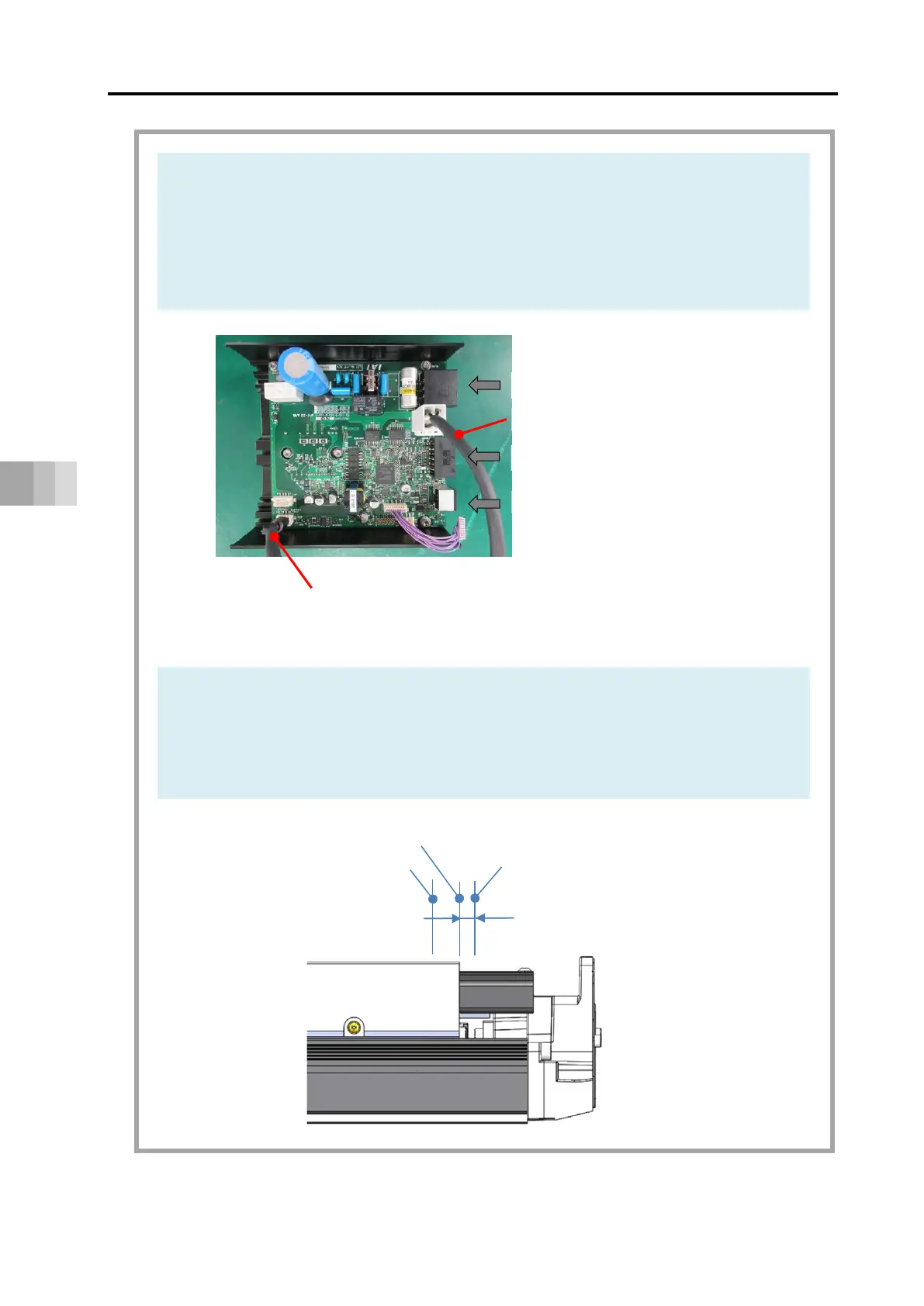 5) Take off the connectors on Motor Cable [B], Encoder Cable [C] and Brake Cable [D]