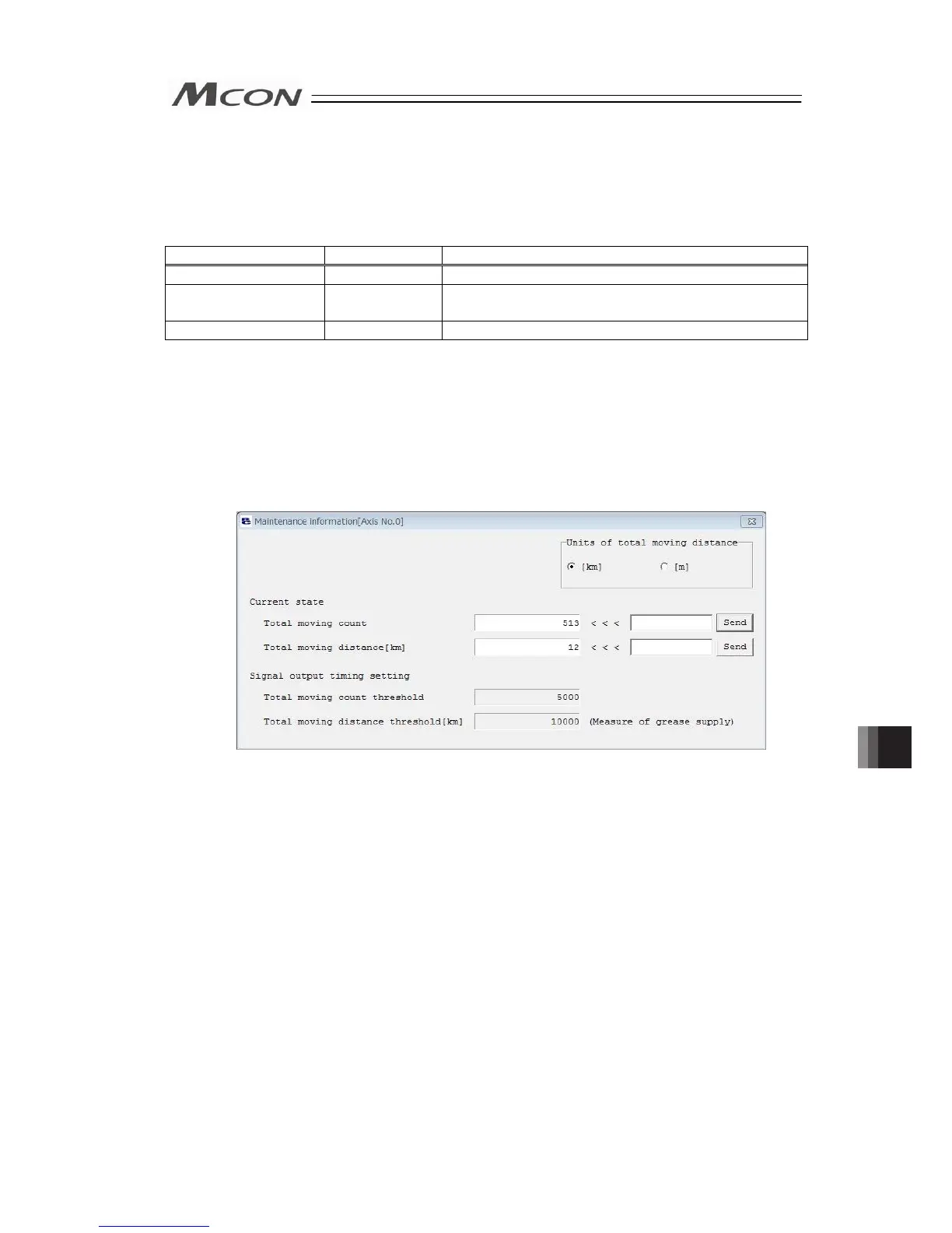 The times of actuator run and distance of operation can be summed up and recorded