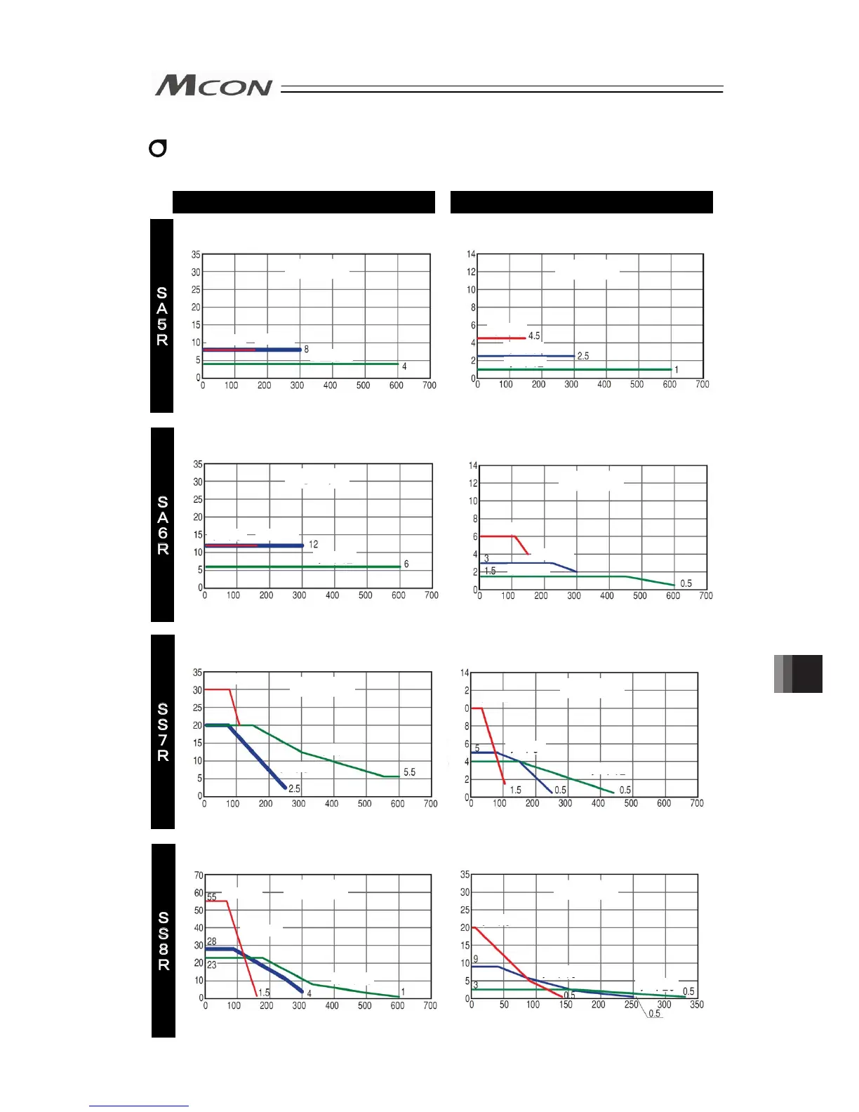 Correlation diagram of speed and loading capacity for the RCP2 slider type