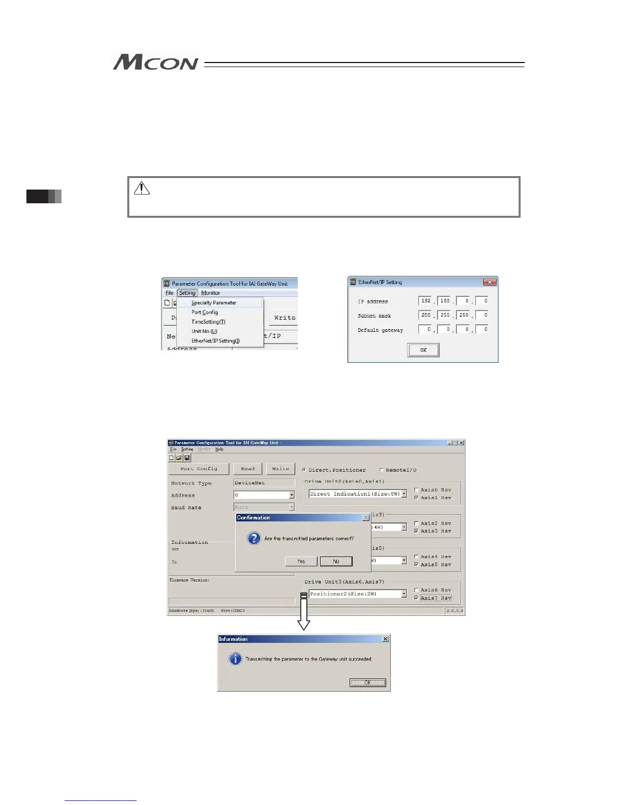[Step 13] Write the edited operation mode setting parameters to MCON. Click on the