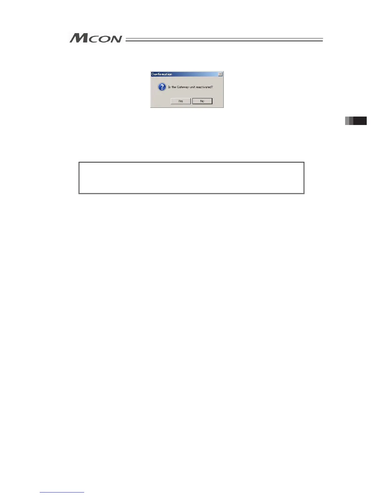 [Step 14] A confirmation window for Gateway Unit reboot opens. Click “Yes” button to accept