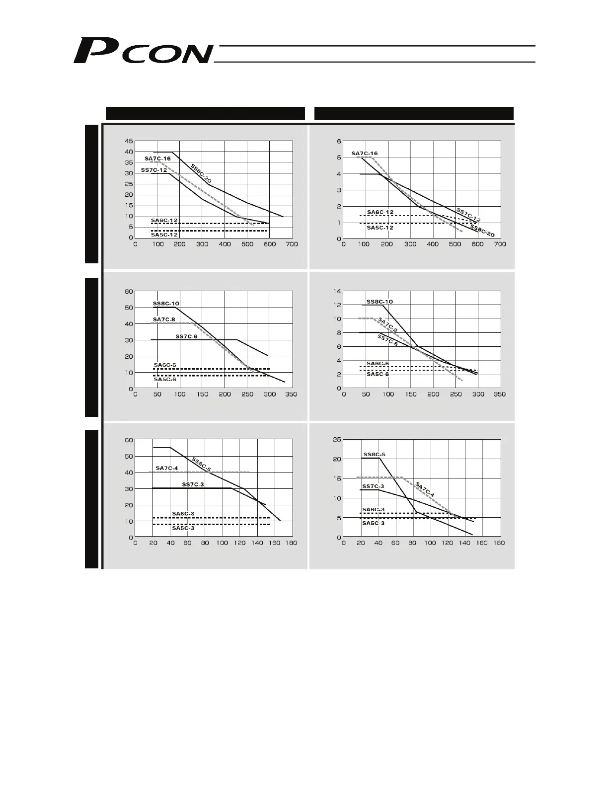 Correlation diagram of speed and load capacity for the slider type (motor-straight type)
