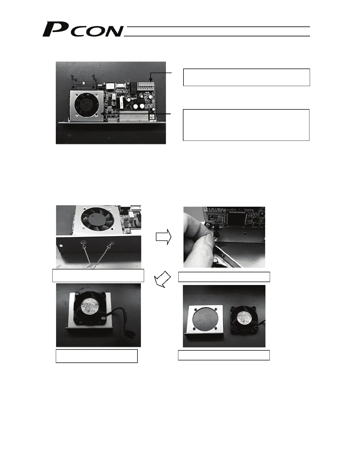 [2] Install a new fan to the mounting bracket, plug in the connector, and affix the mounting bracket