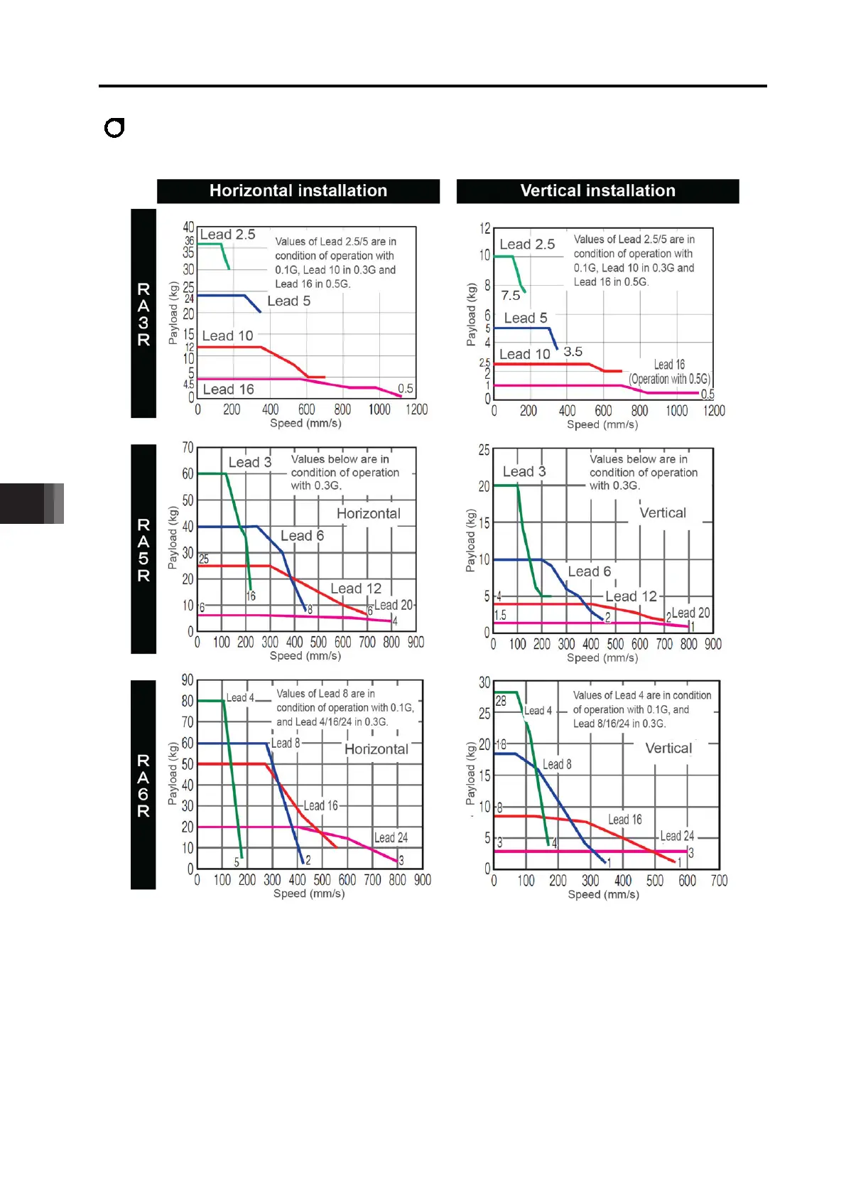 Correlation diagram of speed and payload for the RCP4 rod type (High output