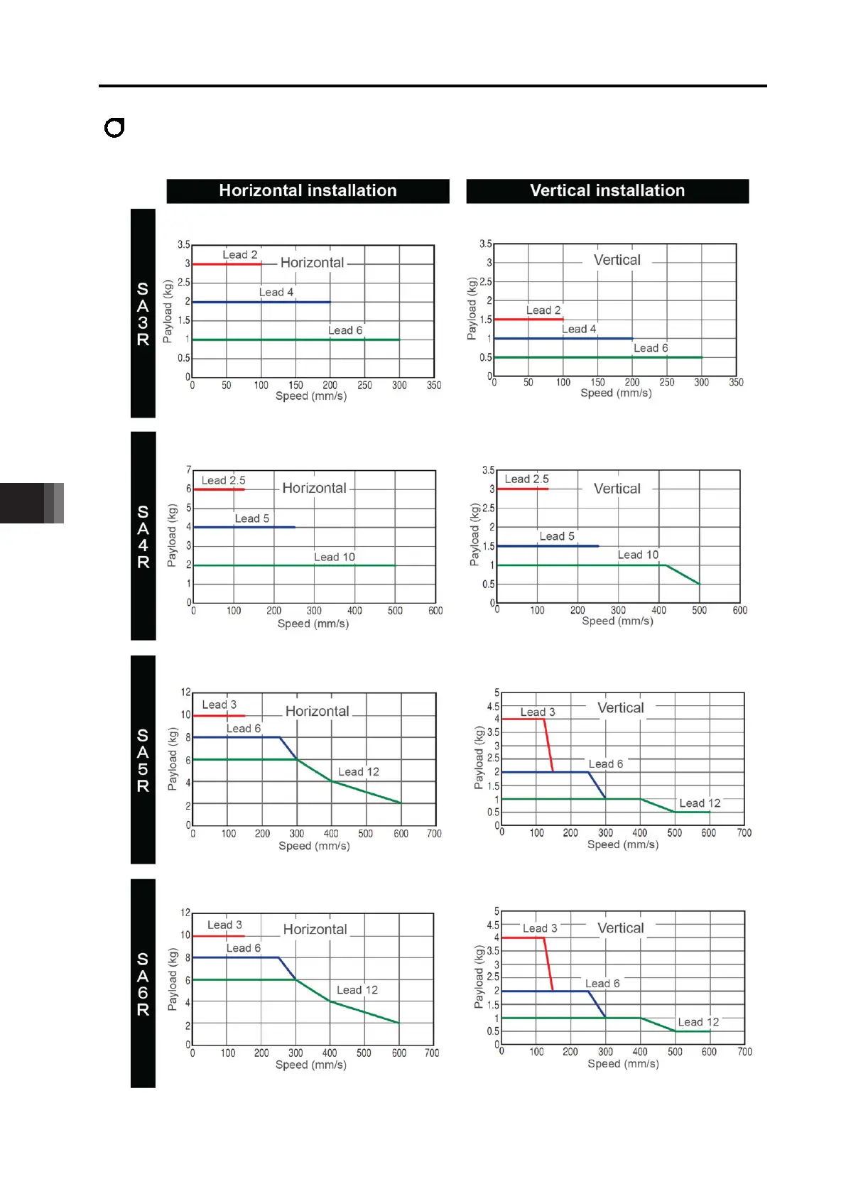 Correlation diagram of speed and payload for the RCP3 slider type (Motor-