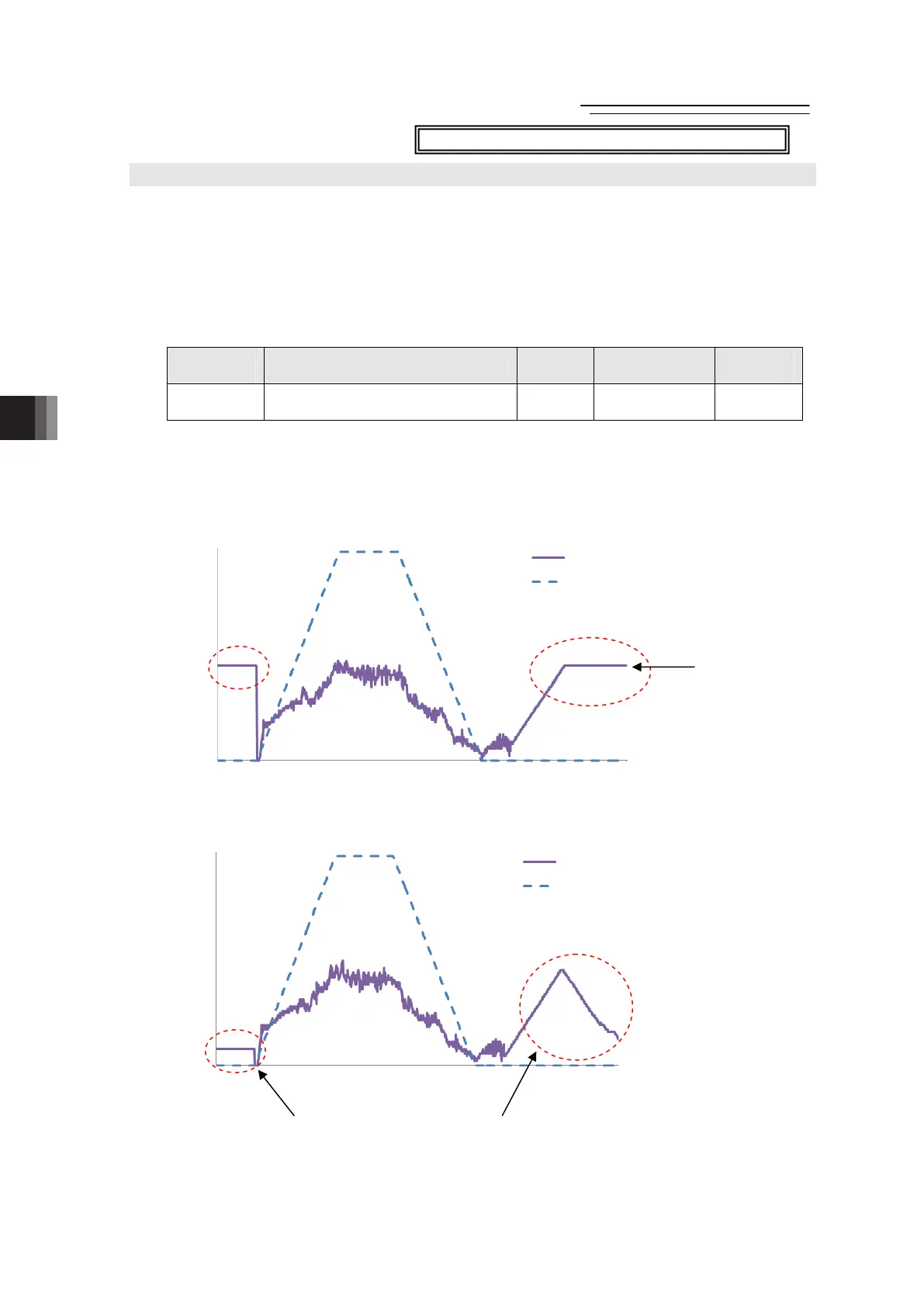 Shown below is a graph (example) of the current flow volume and velocity command in the