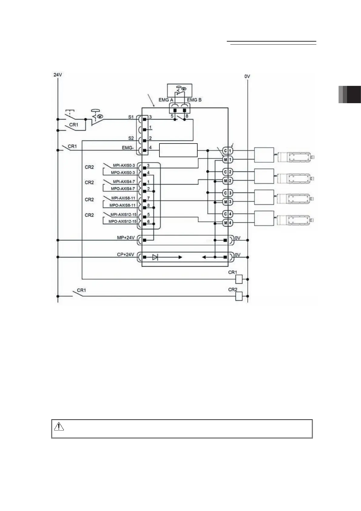 Note 3 The rating for the emergency stop signal (EMG-) to turn ON/OFF at contact CR1 is 24V DC