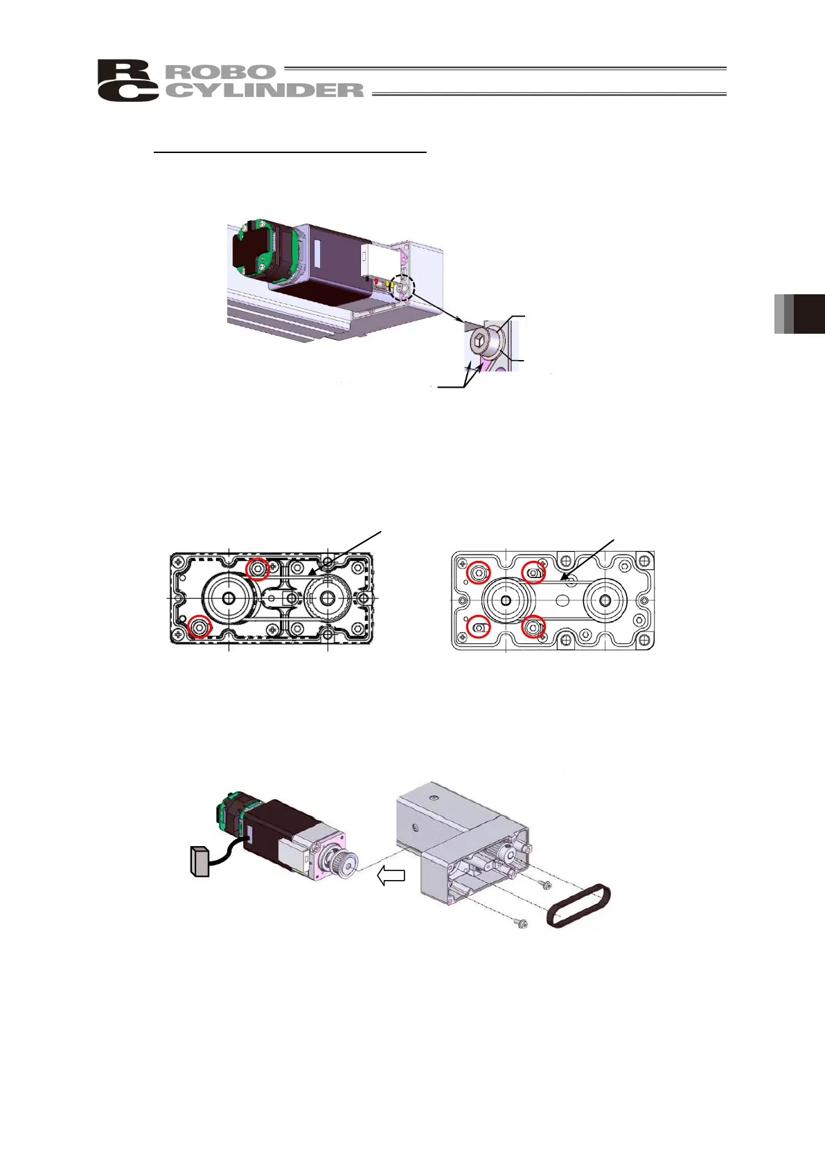 4) Loosen the bolts (where marked with a circle; two bolts for RA4R, four bolts for RA6R, RA7R,