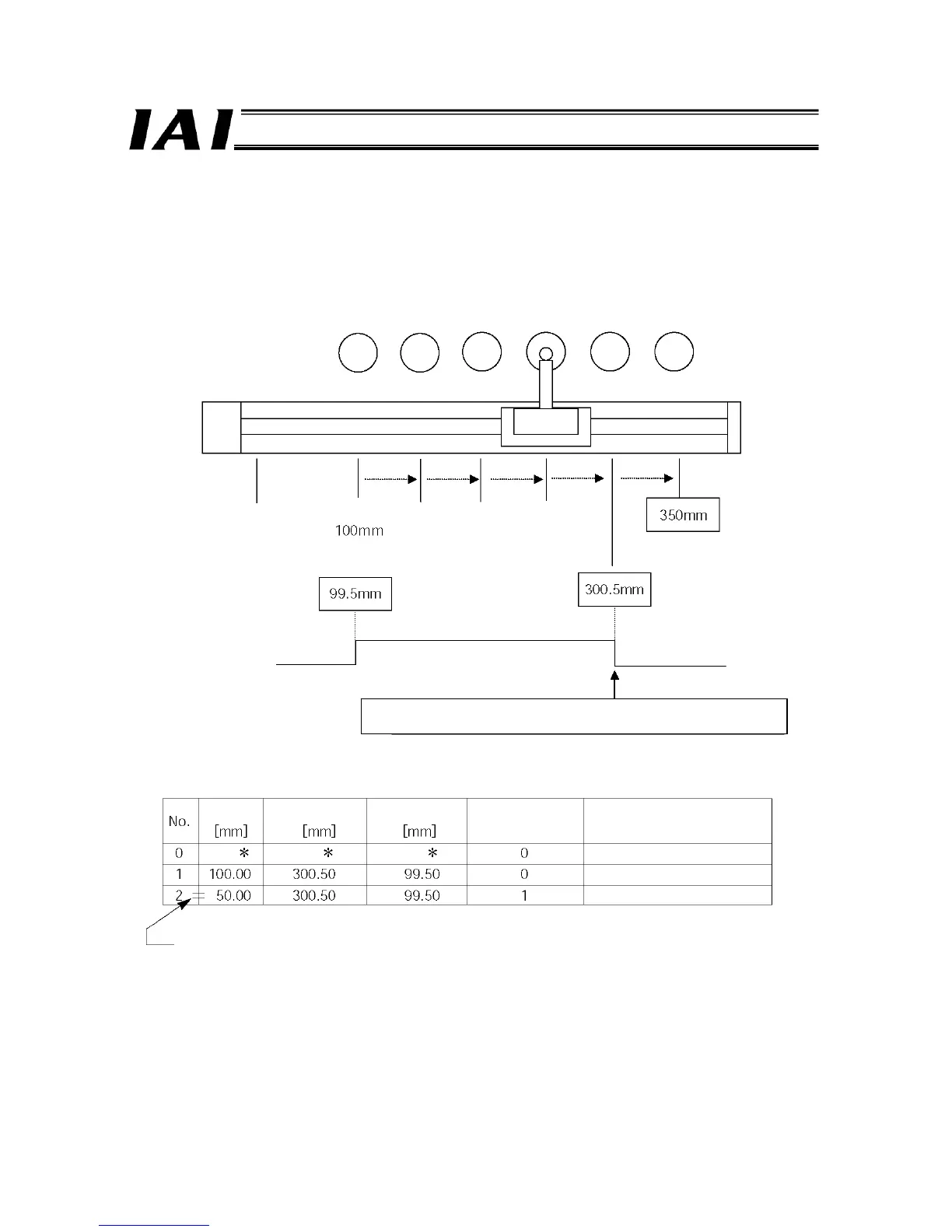 The following explains an example of positioning operation repeated at a 50-mm pitch, starting from position No. 1.