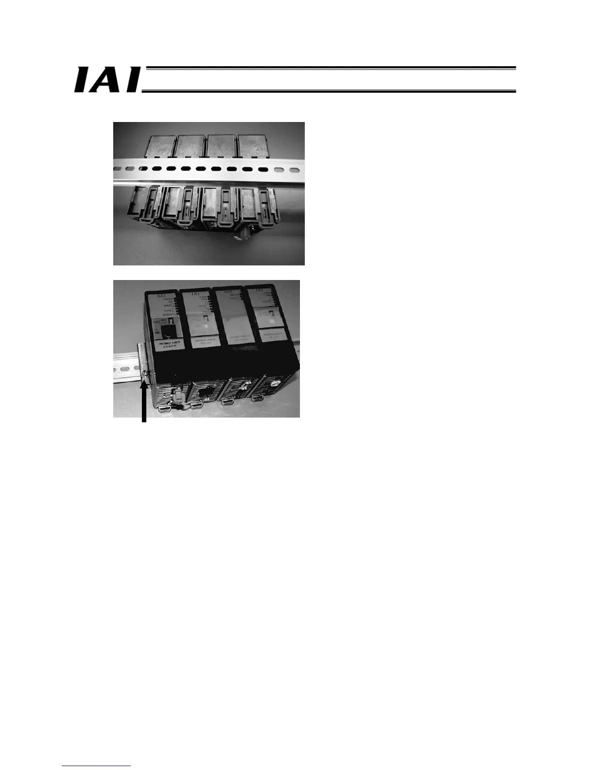 Orient each fixture so that the arrow points upward. Hook the bottom of the fixtures on the DIN rail, hook the top,
