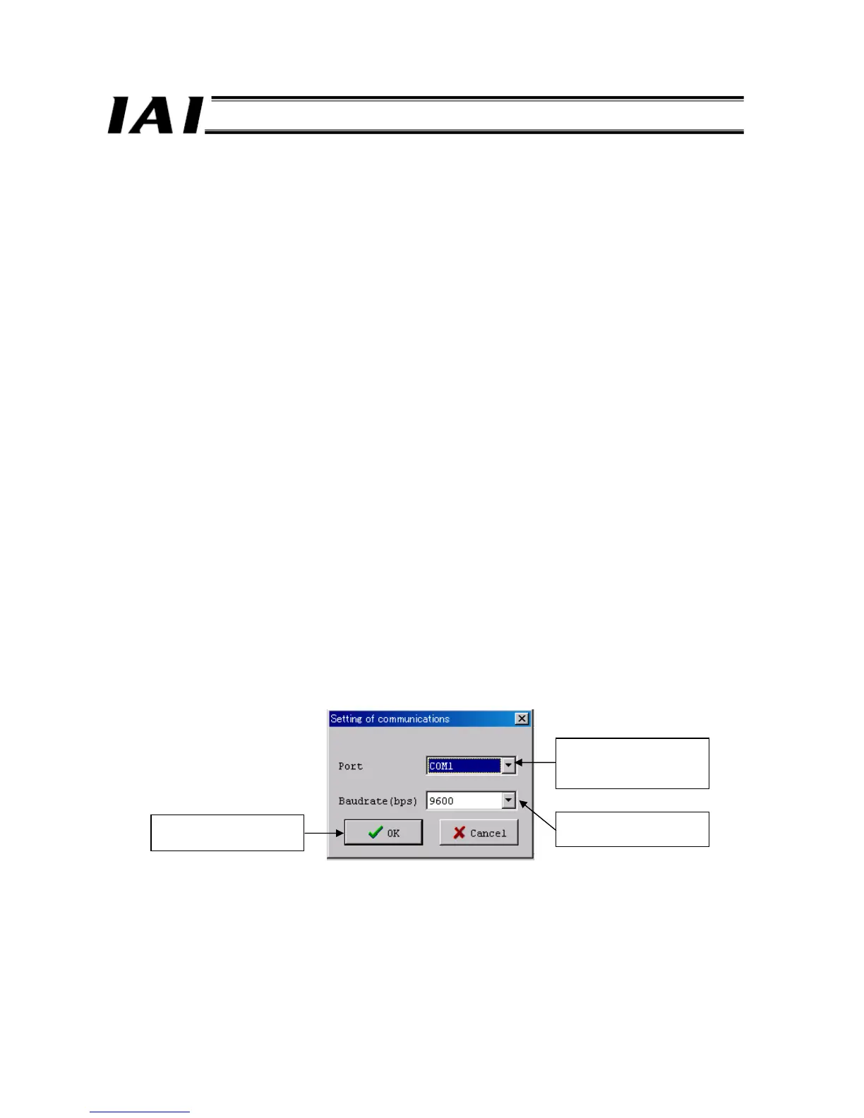 In this dialog box, select the COM port of the PC that the communication cable was connected in process (2) above, as