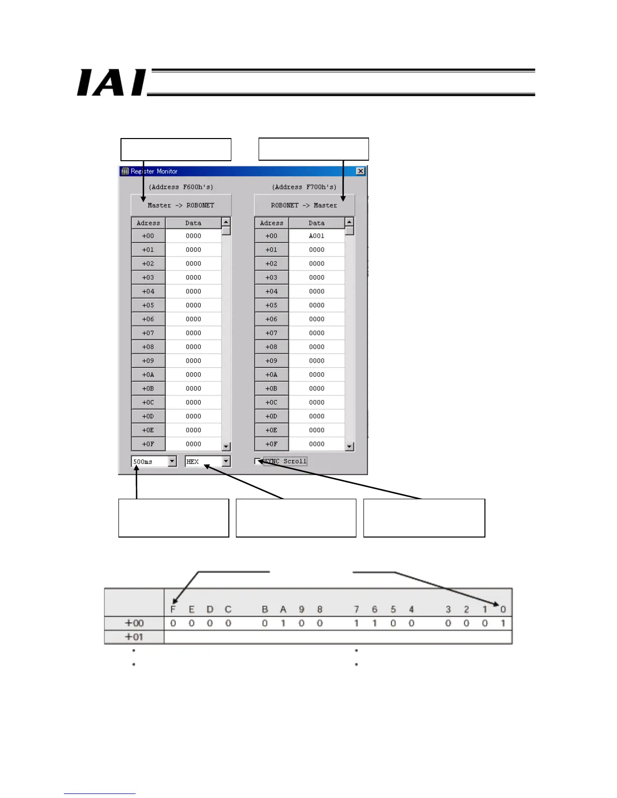 [2]-1 Choosing I/O data will lead to display the resister monitor window. (Initially it is displayed in hexadecimal numbers.