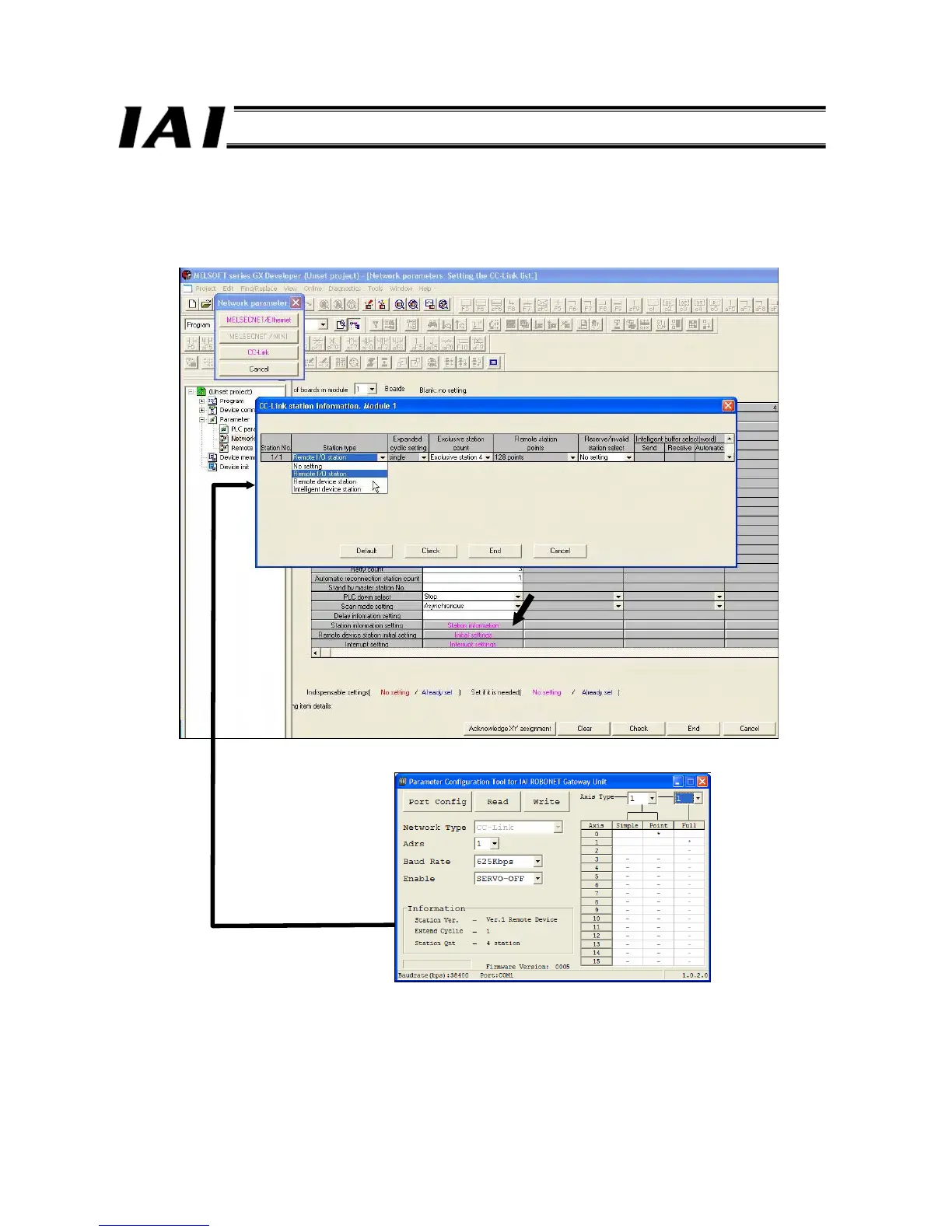 The ROBONET gateway parameter setting screen below applies to the example of system configuration used in
