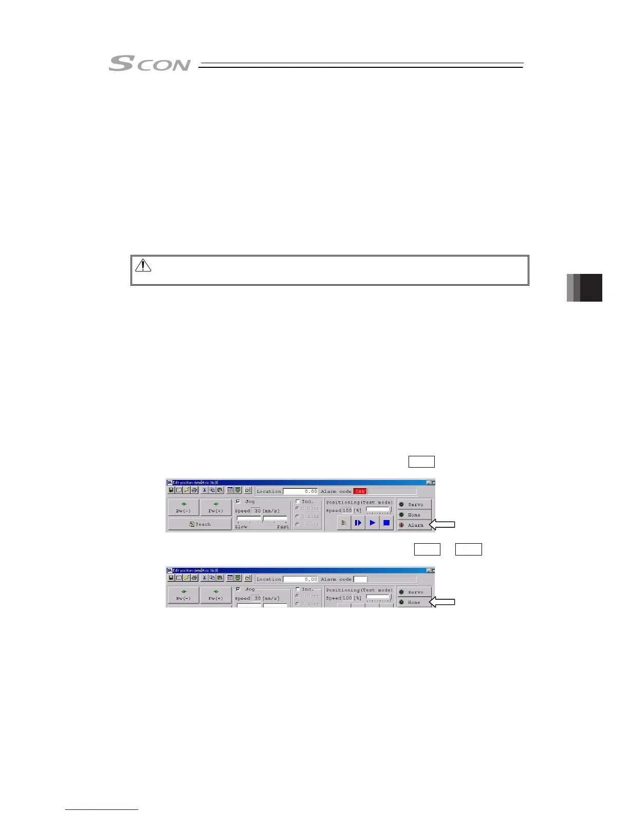 4) The absolute encoder error appears on the teaching tool. Perform alarm reset.