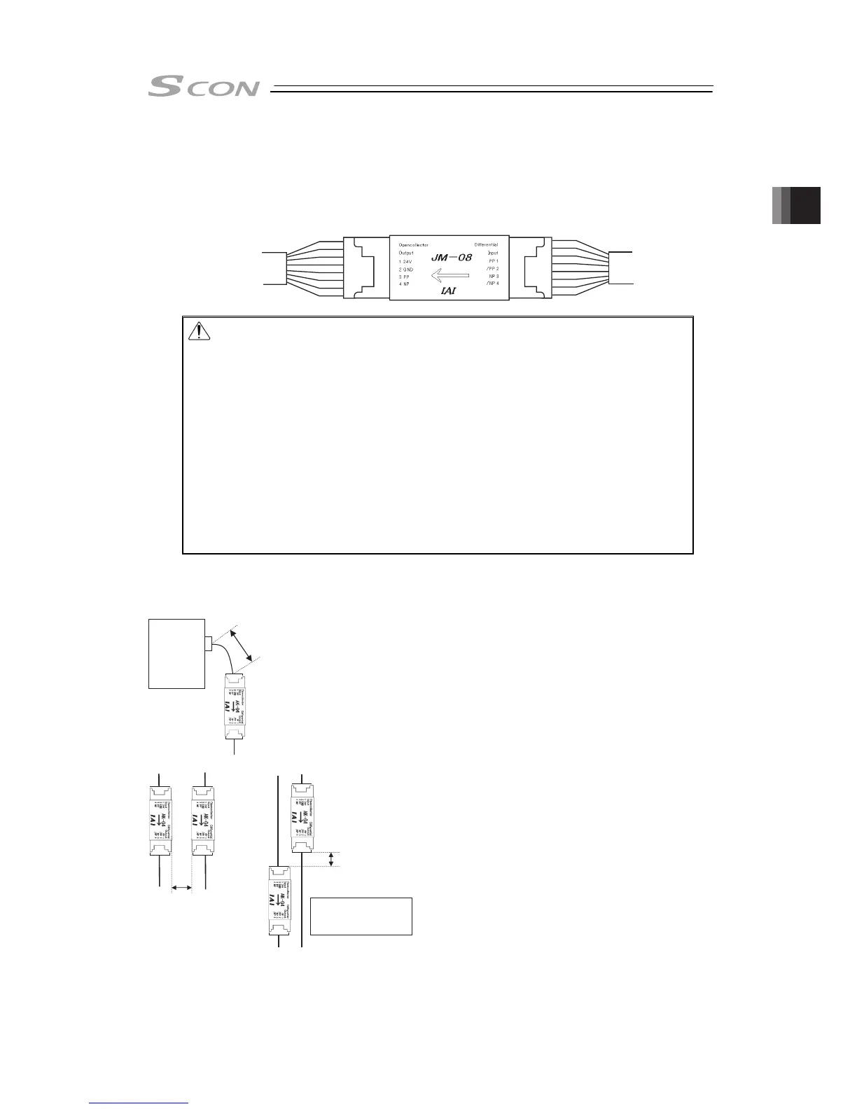 5) Make the wiring between the host controller (PLC, etc.) and JM-08 as short as possible.