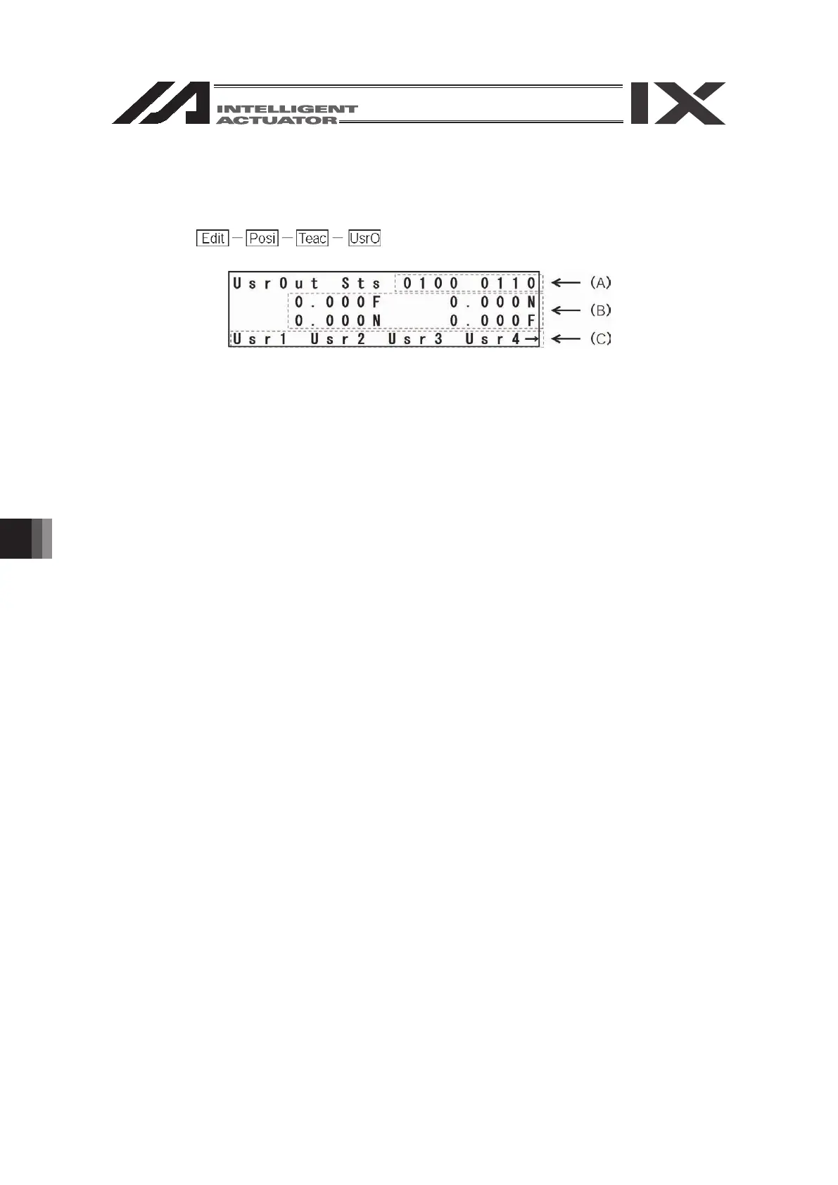 The conditions of user-specified output ports are displayed as “1” (=ON) and “0” (=OFF).