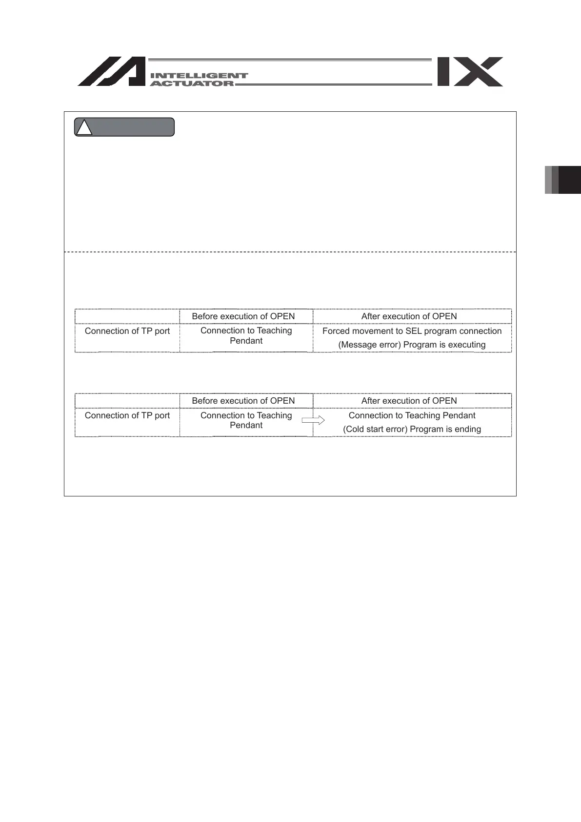 When the X-SEL controller K type executes “OPEN 1” (channel 1 shared for the teaching