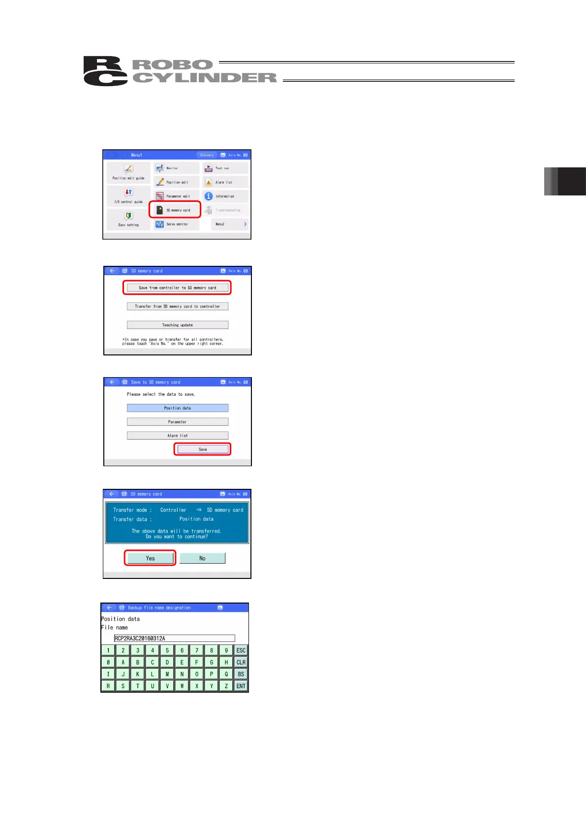 The data in the controller is transferred to the Secure Digital memory card for backup.
