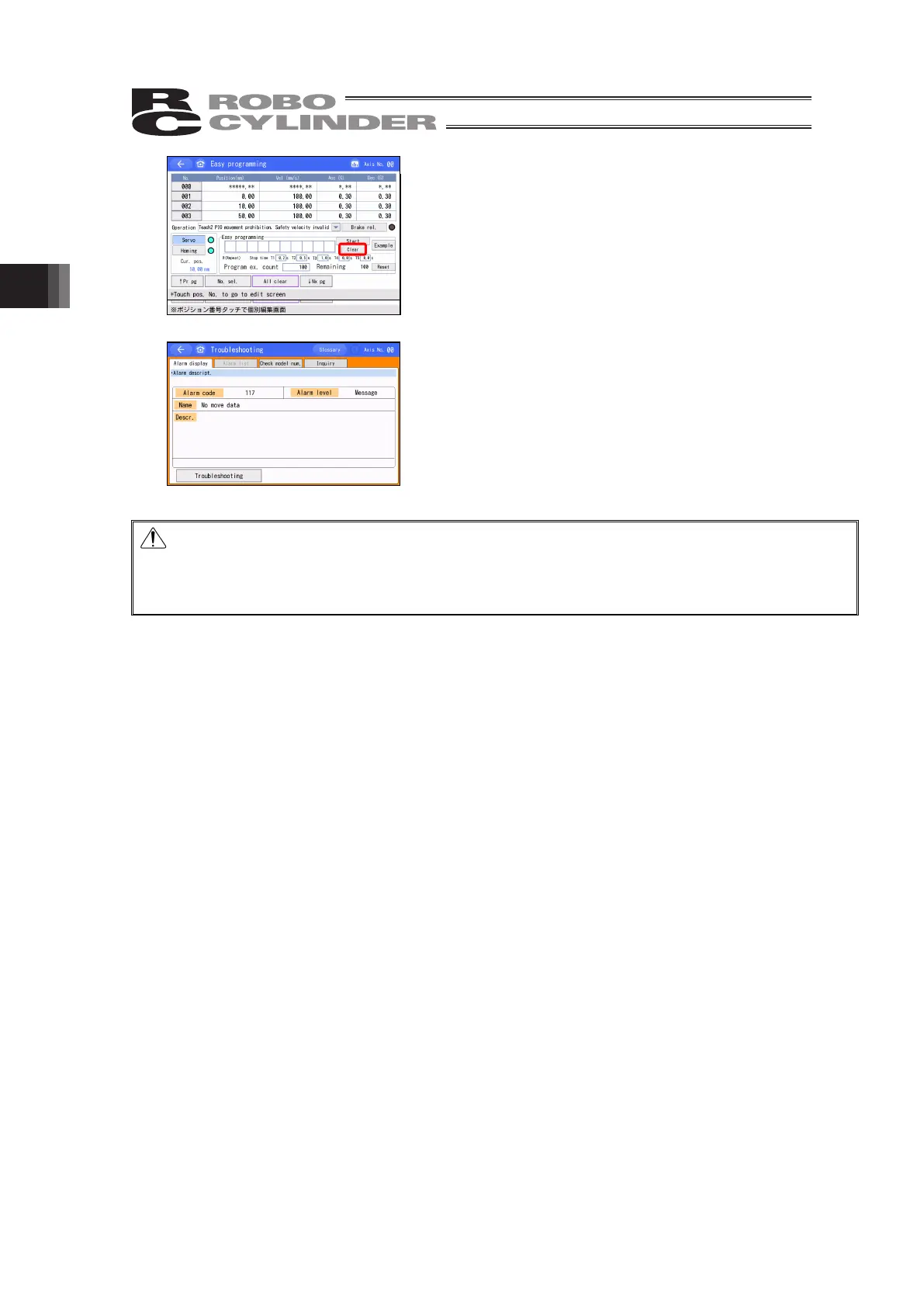 Caution: When there is an alarm issued due to such a reason as making a mistake in position