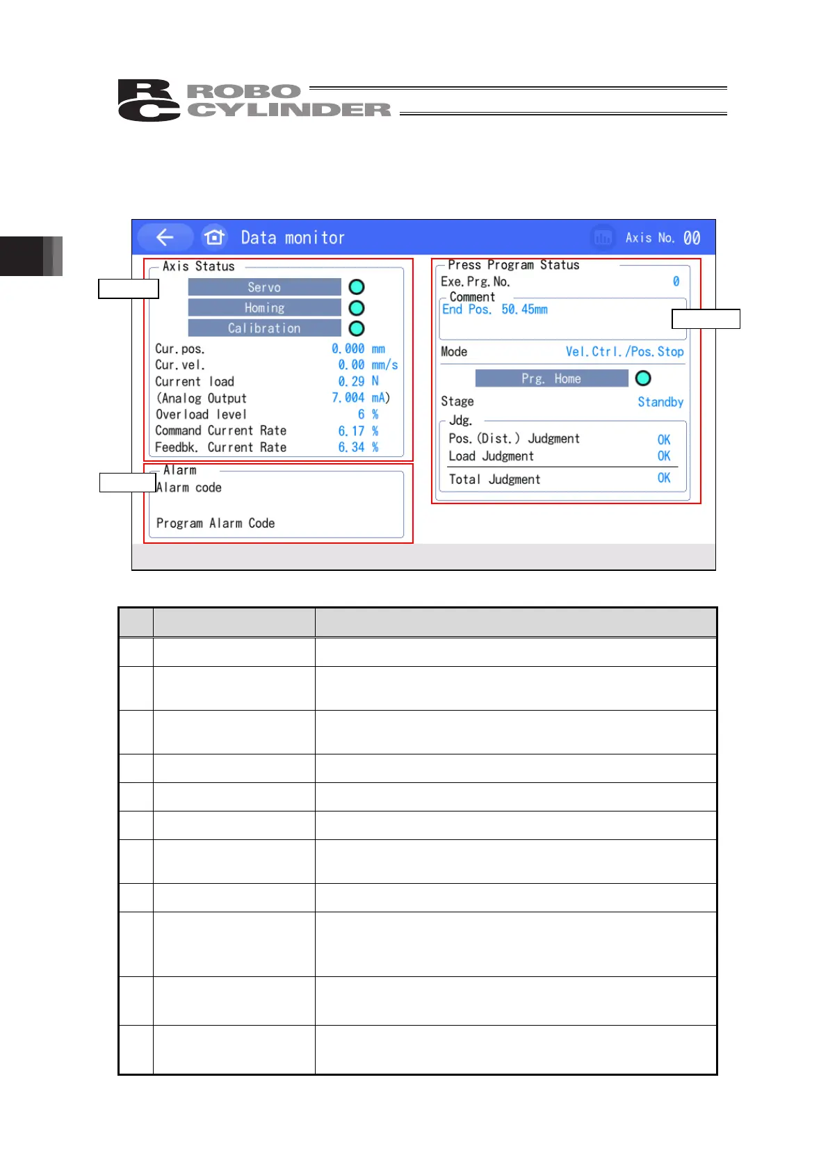 1 Servo The servo status is shown. ON is lit. OFF is unlit.