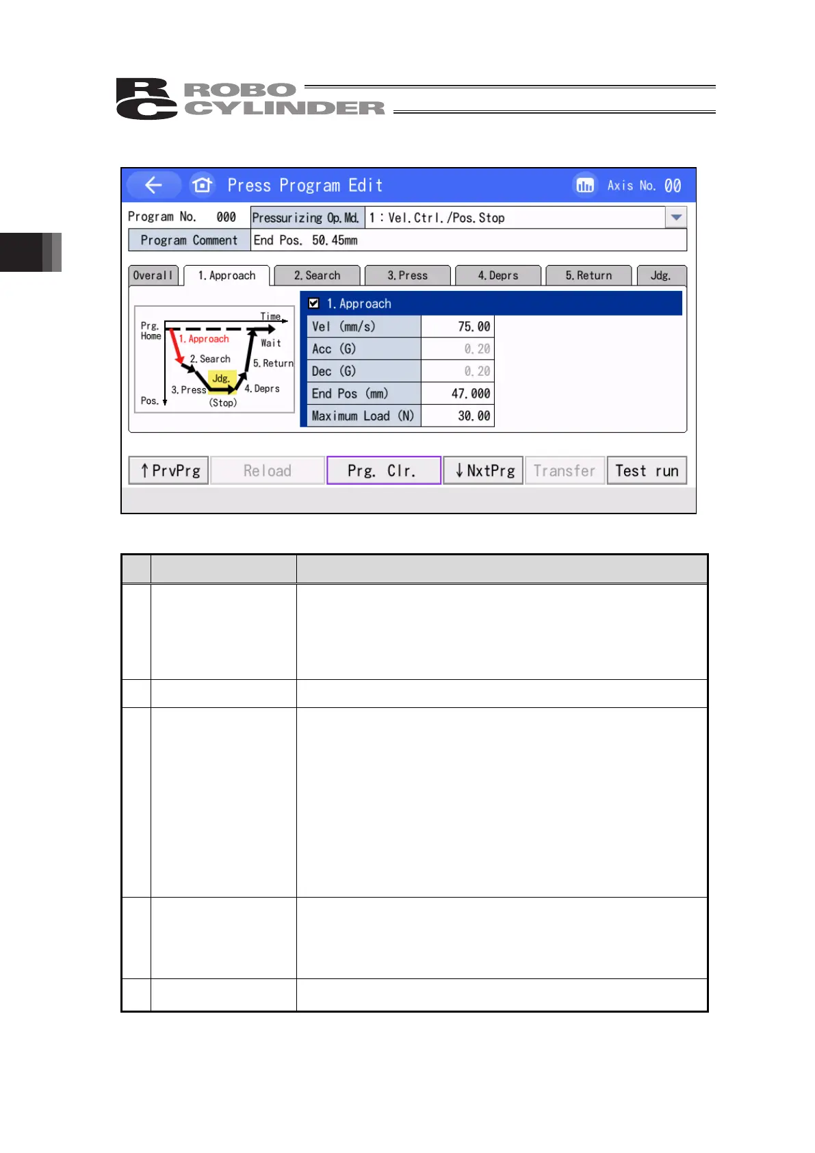 2) Vel (mm/s) Velocity of the approaching operation can be input.