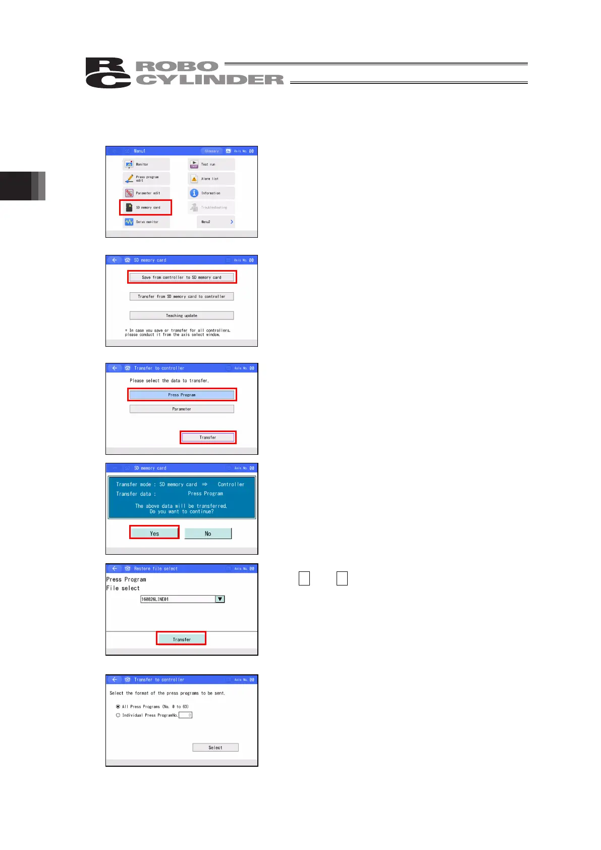 Touch [Transfer from SD memory card to controller].