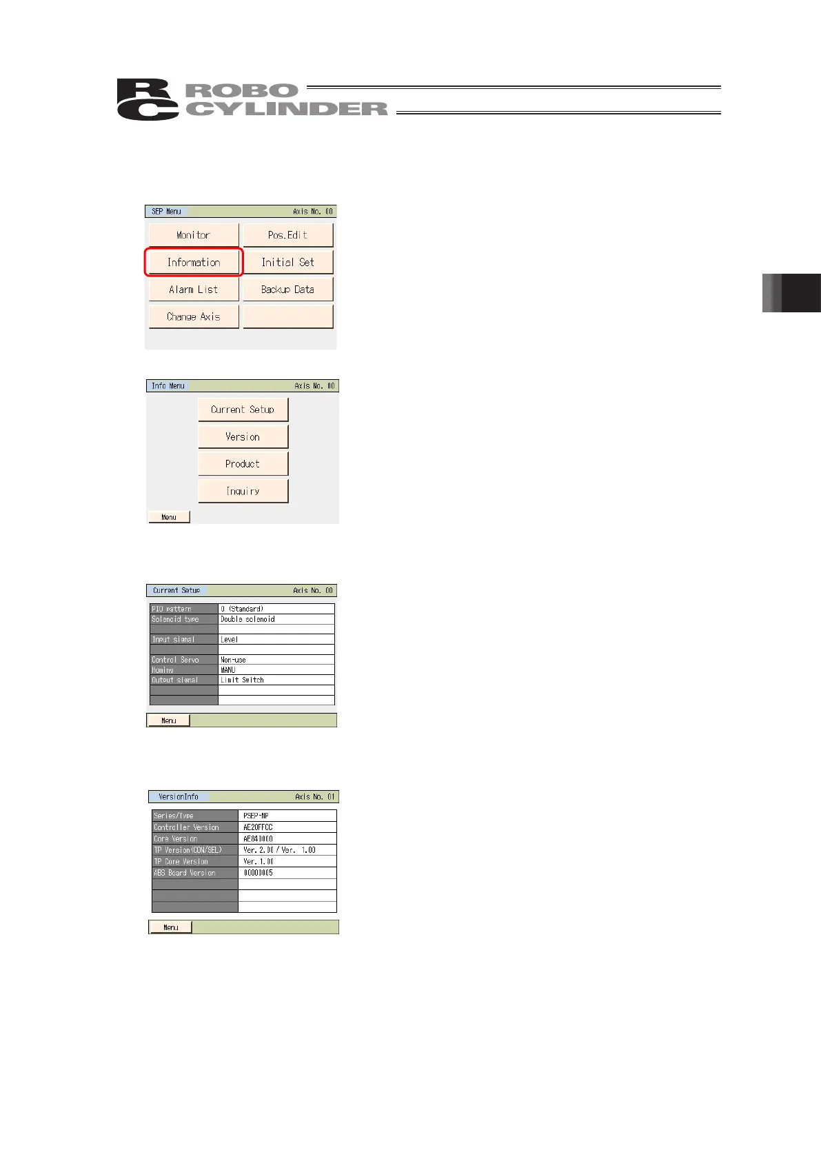 Touch [Information] on the SEP menu screen.