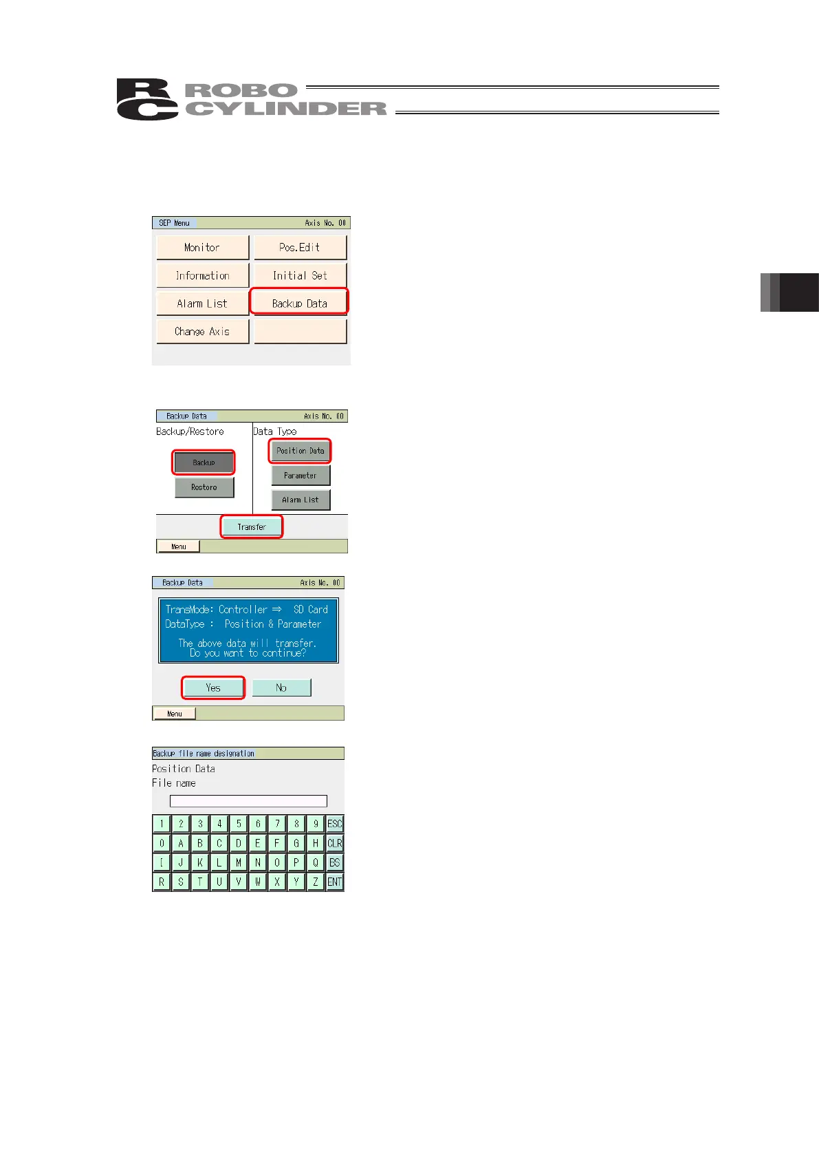 Touch [Backup Data] on the SEP Menu screen.