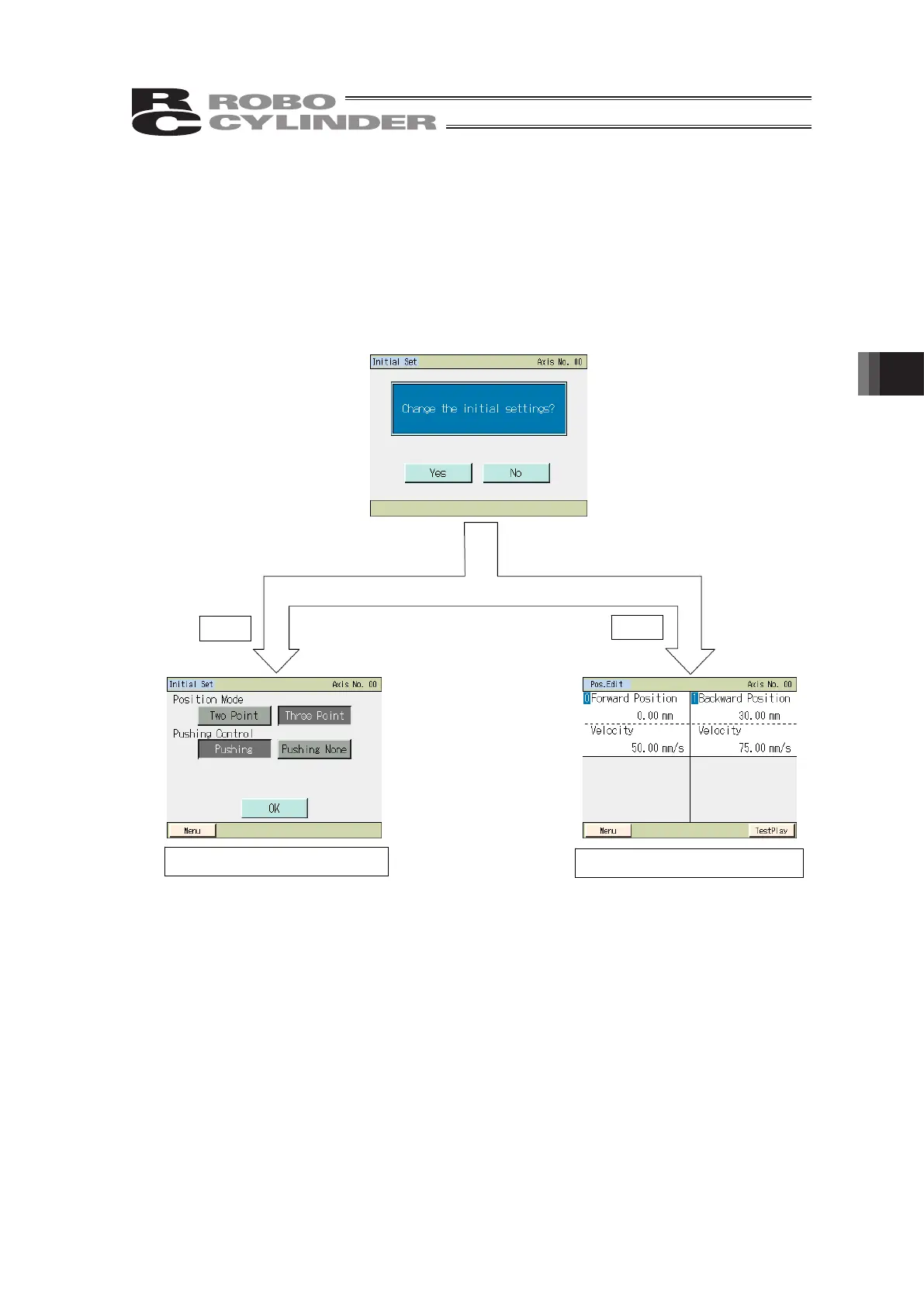 Select [Yes], and the display will change to the initial setting screen where you can set the