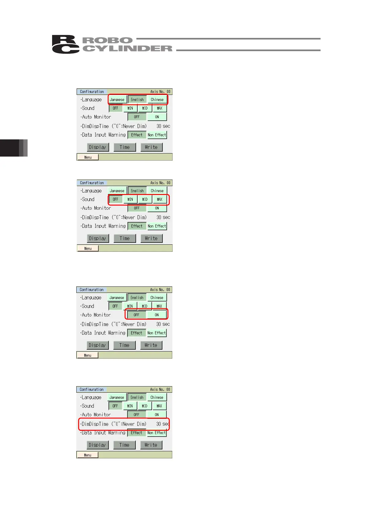 Display for Japanese/English/Chinese languages setting change