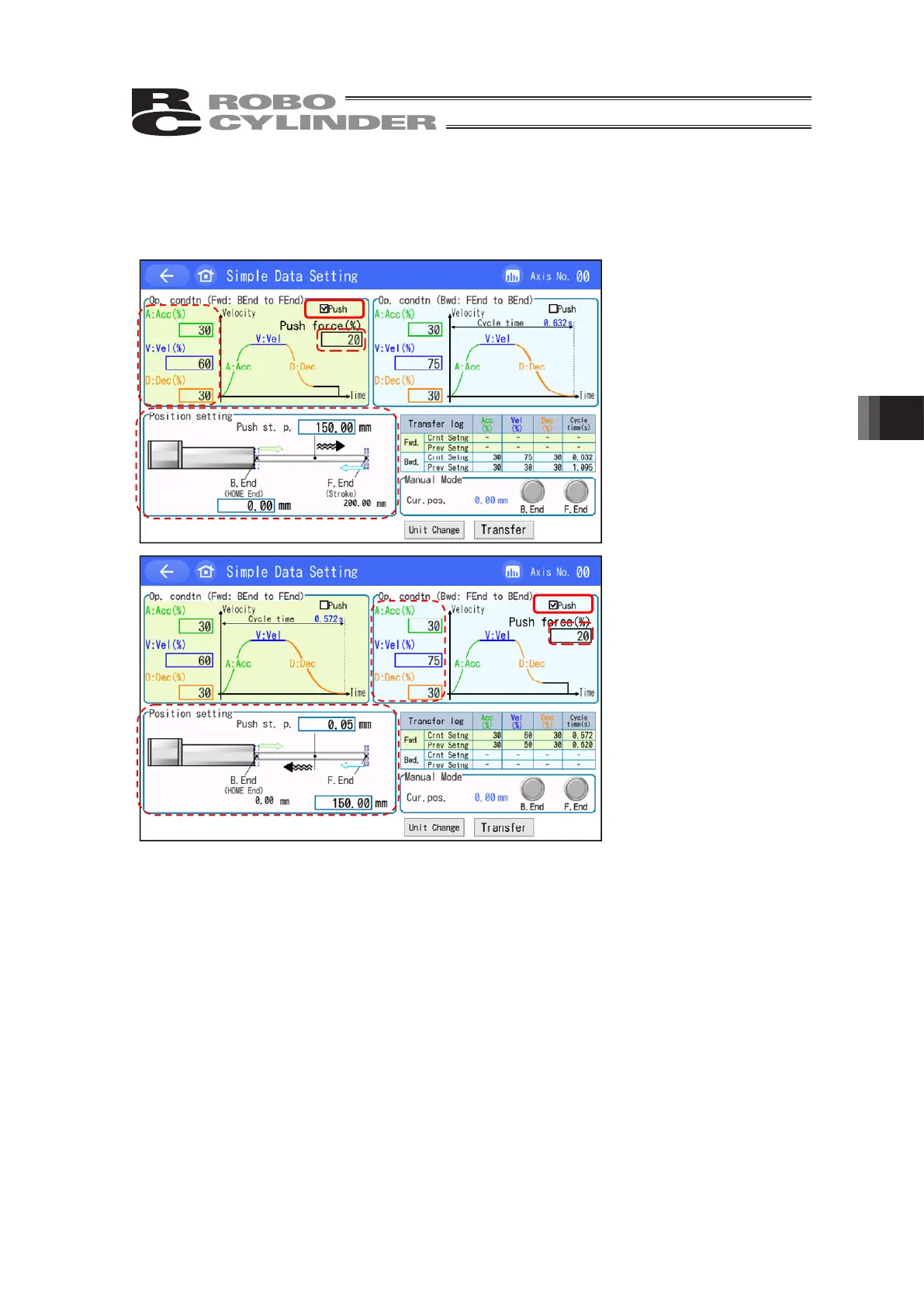 3) Push force [%] ---------- Set a pressing torque (limit current value) in %.