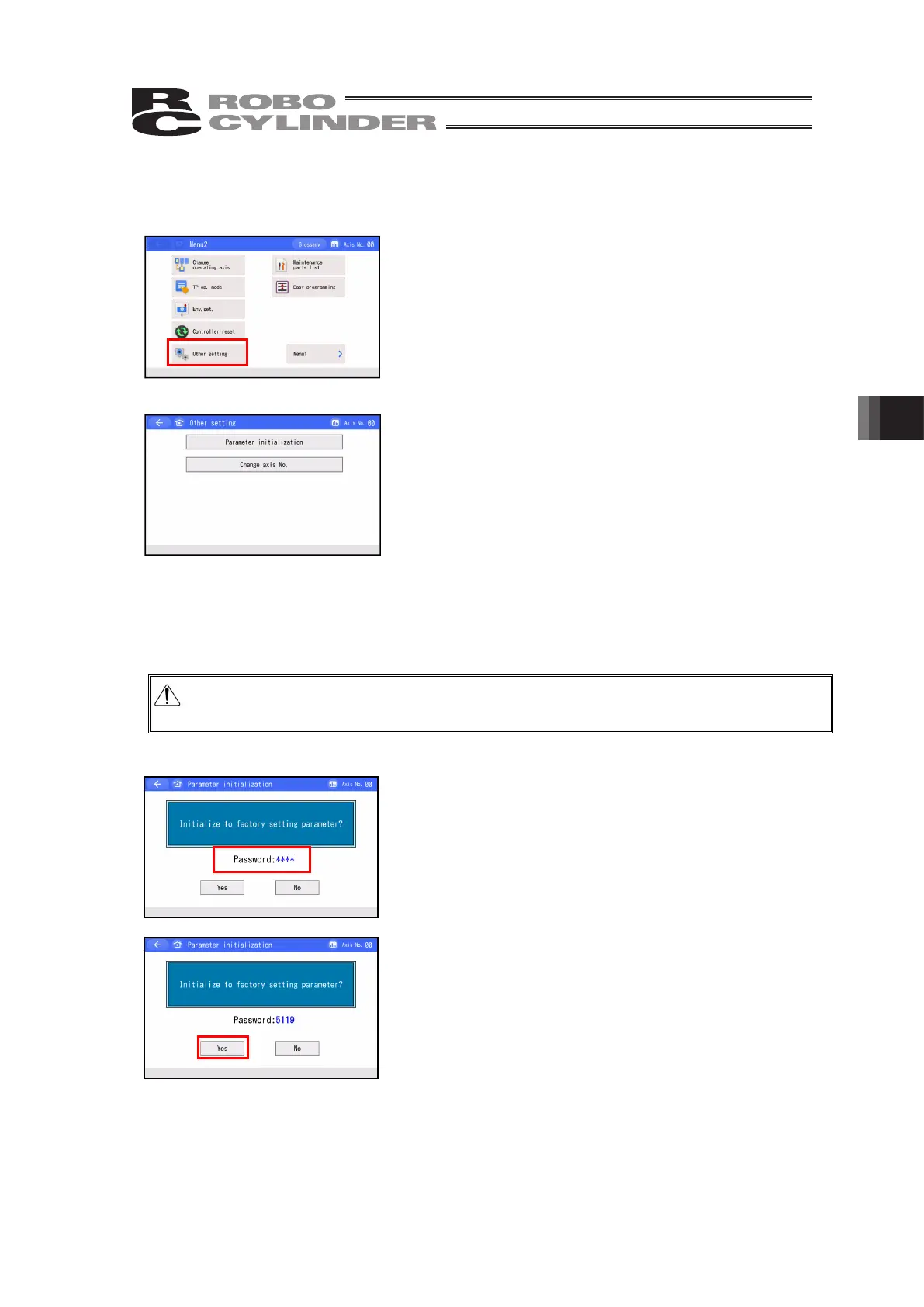 Touch [Parameter initialization] in Other setting screen to display Parameter initialization screen.
