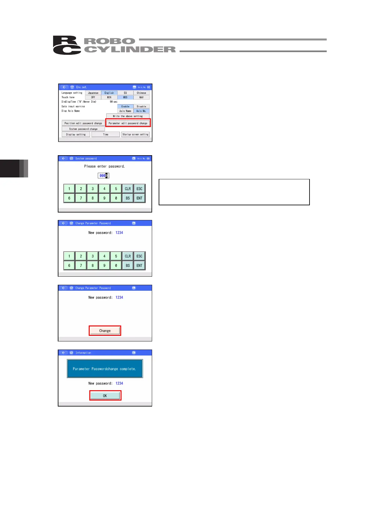 Touch [Parameter edit password change].
